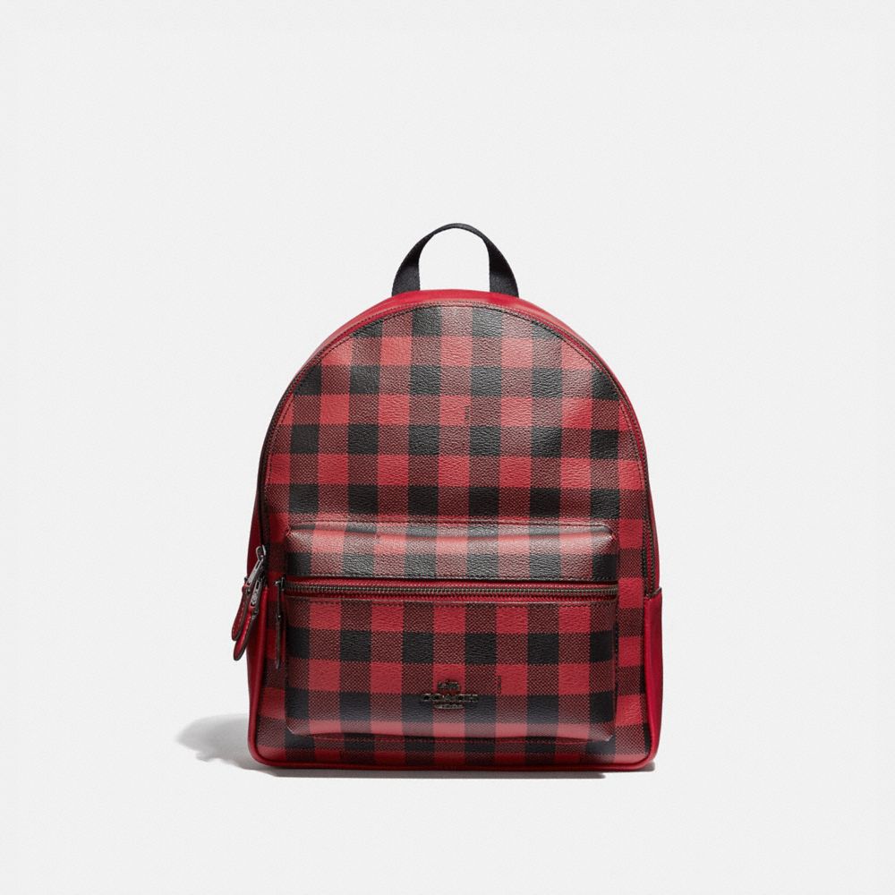 MEDIUM CHARLIE BACKPACK WITH GINGHAM PRINT
