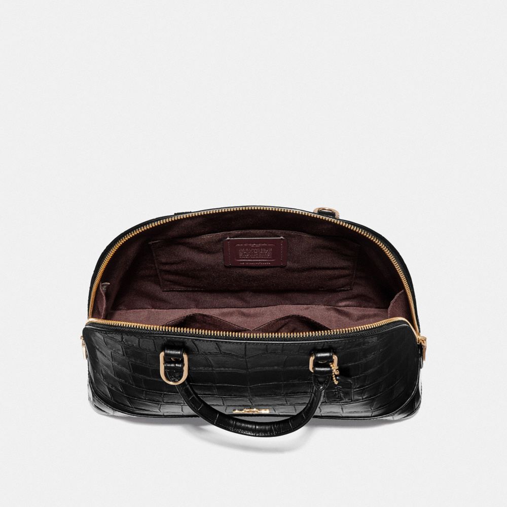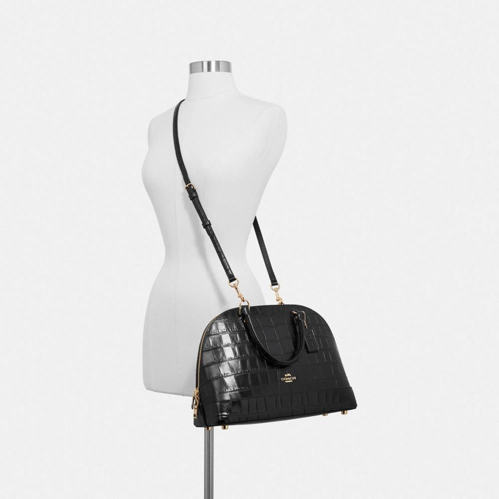 | Crocodile-embossed leather| Inside cell phone and multifunction pockets| Zip closure, fabric lining| Handles with 4 1/4" drop| Outside slip pocket| Detachable strap with 21 1/2" for shoulder or crossbody wear| 13 1/2" (L) x 9 1/2" (H) x 4 3/4" (W)