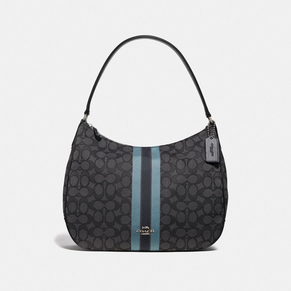 ZIP SHOULDER BAG IN SIGNATURE JACQUARD WITH STRIPE