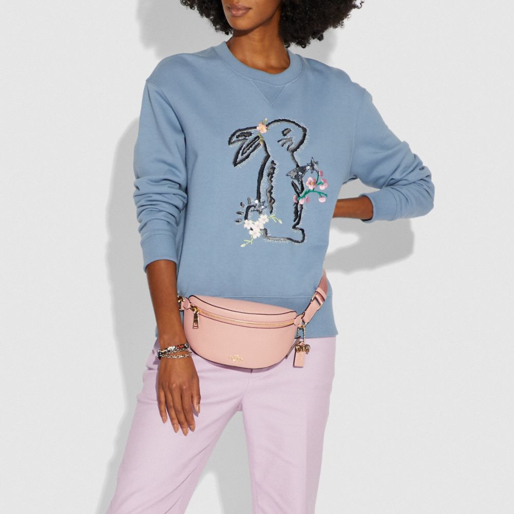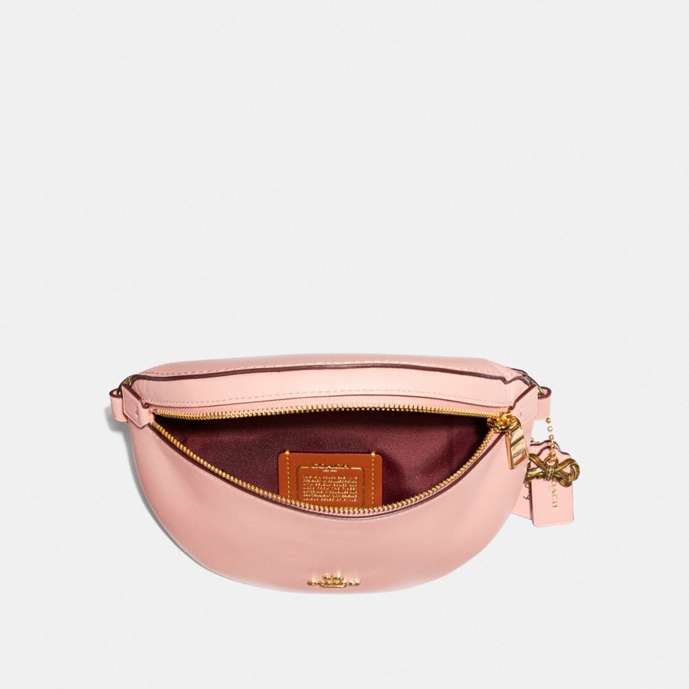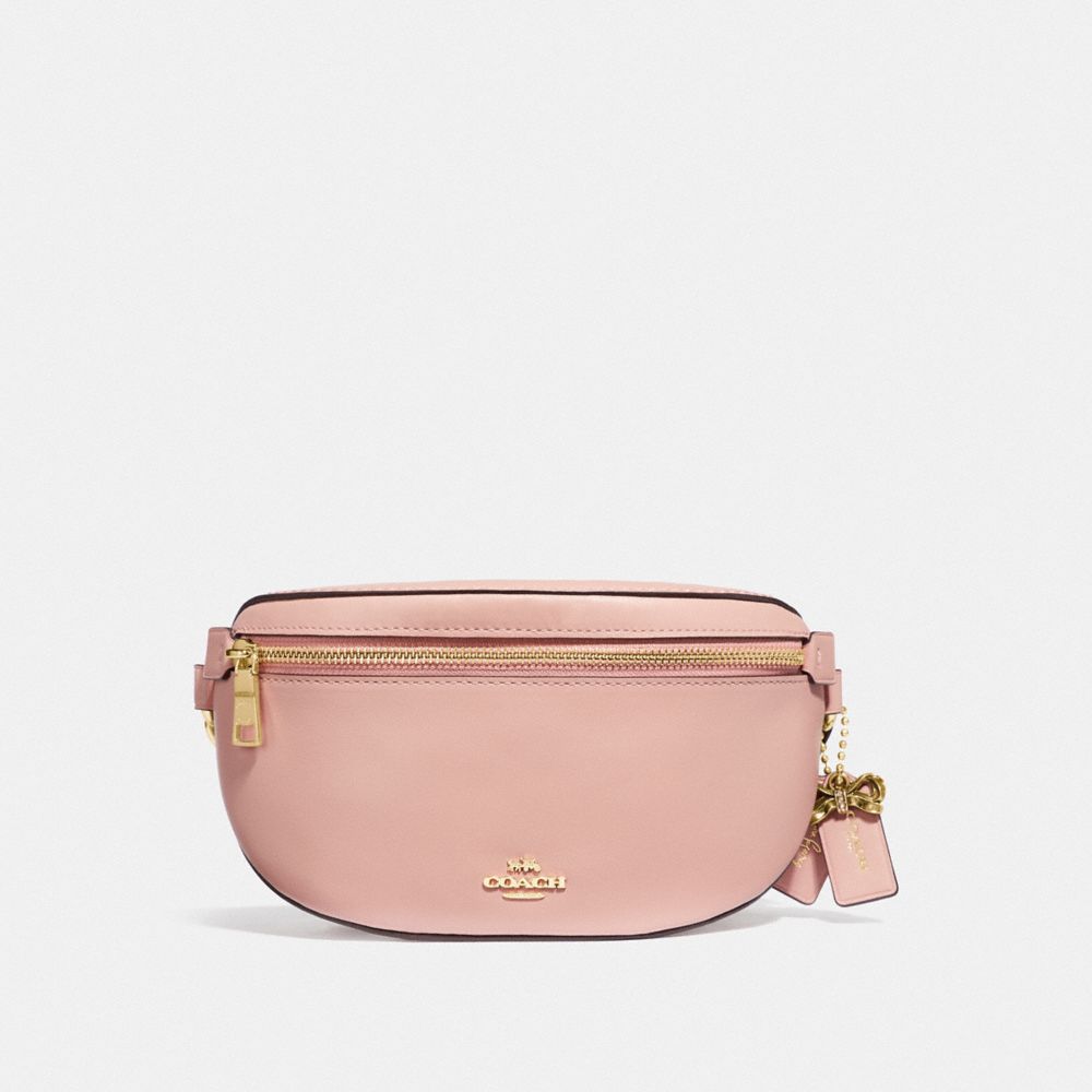 Refined calf leather| Zip closure, fabric lining| Adjustable strap for wear at waist| Outside zip pocket| 8 1/2" (L) x 5" (H) x 2 3/4" (W)| Coach x Selena Gomez collection