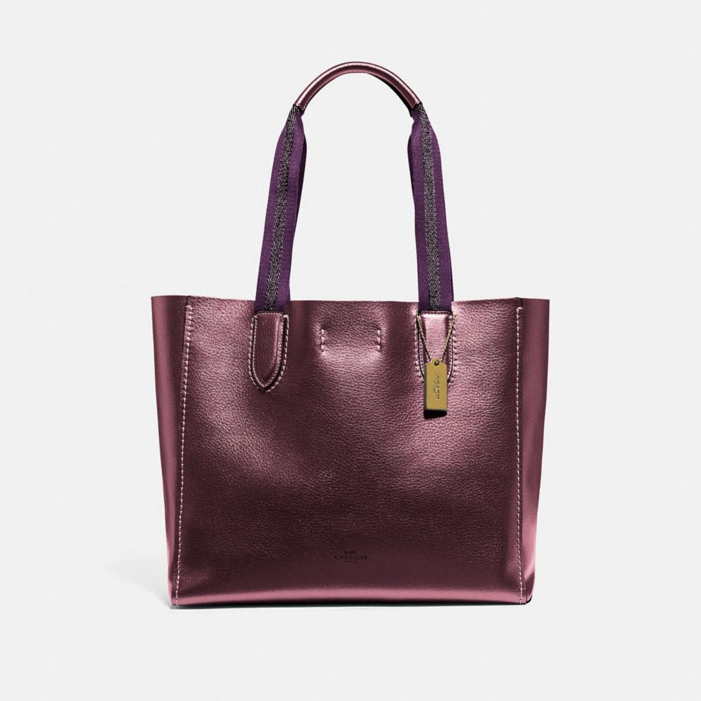 Metallic pebble leather| Inside zip pocket| Snap closure| Handles with 8 3/4" drop| 12 1/2" (L) x 10 3/4" (H) x 5" (W)