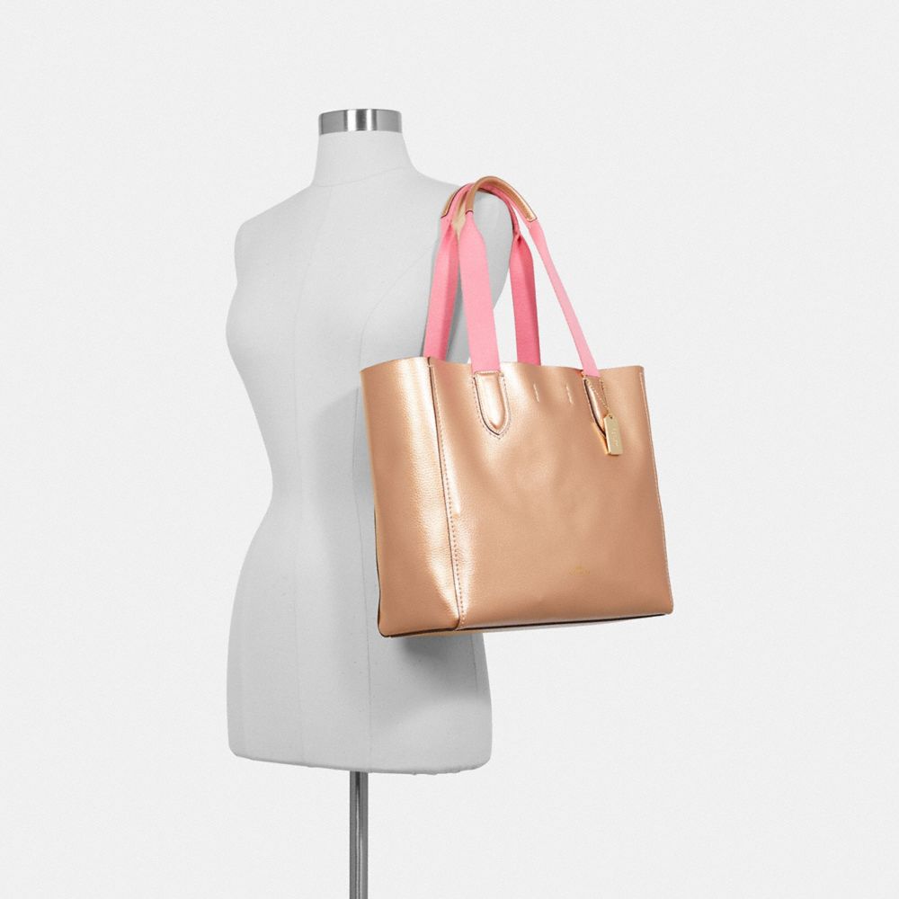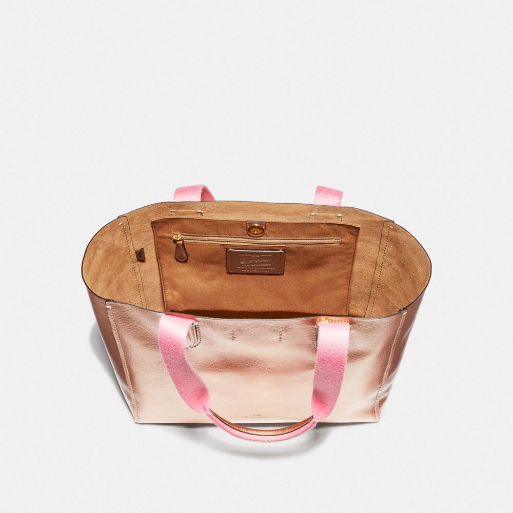 Metallic pebble leather| Inside zip pocket| Snap closure| Handles with 8 3/4" drop| 12 1/2" (L) x 10 3/4" (H) x 5" (W)
