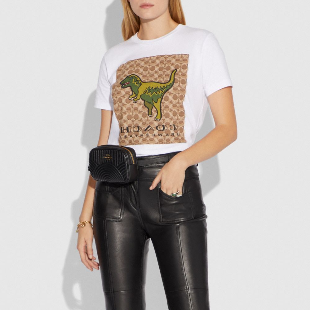 Nappa leather| Two credit card slots| Inside open pocket| Zip closure, fabric lining| Adjustable strap for wear at waist| 7 3/4" (L) x 4 1/4" (H) x 1 1/2" (W)