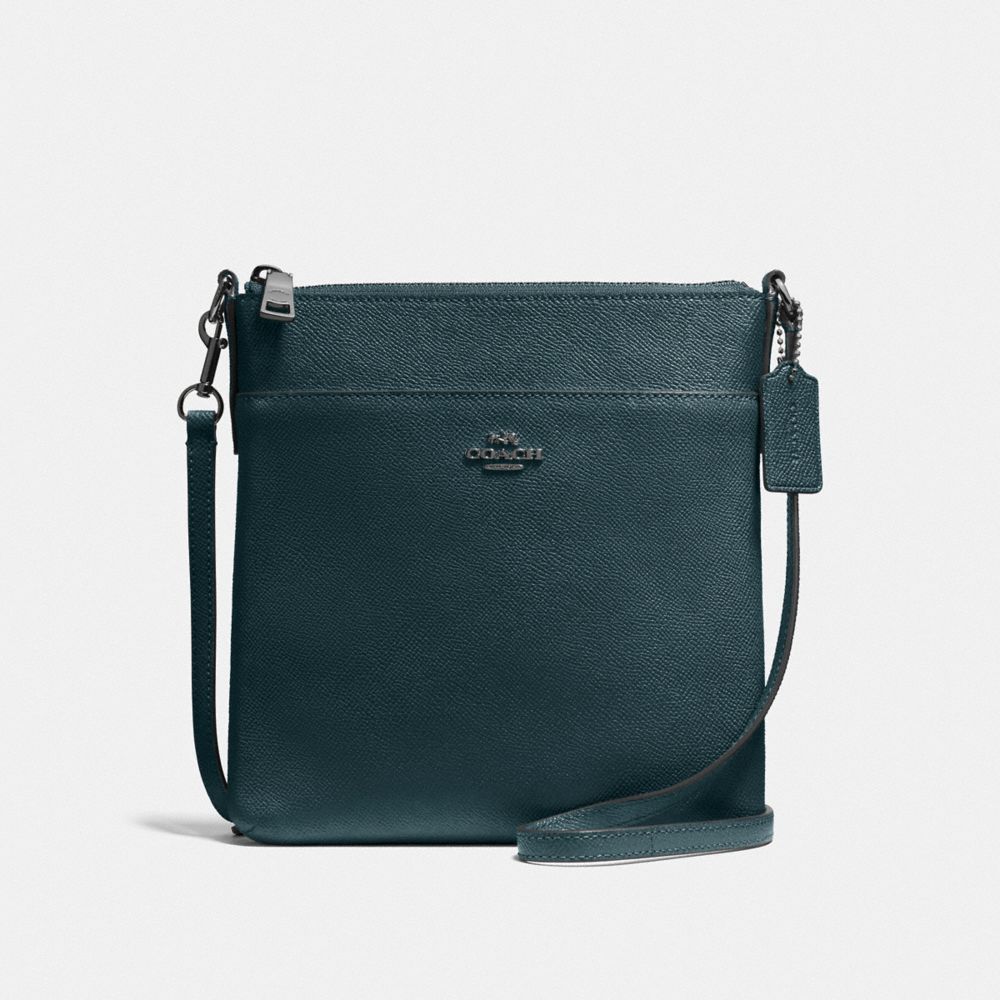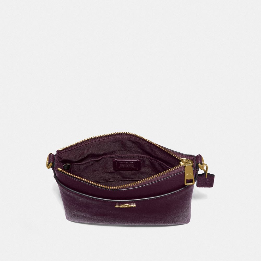 Crossgrain leather| Inside open pocket| Zip-top closure, fabric lining| Outside open pocket| Detachable strap with 23" drop for shoulder or crossbody wear| 7 3/4" (L) x 8 1/4" (H) x 1" (W)