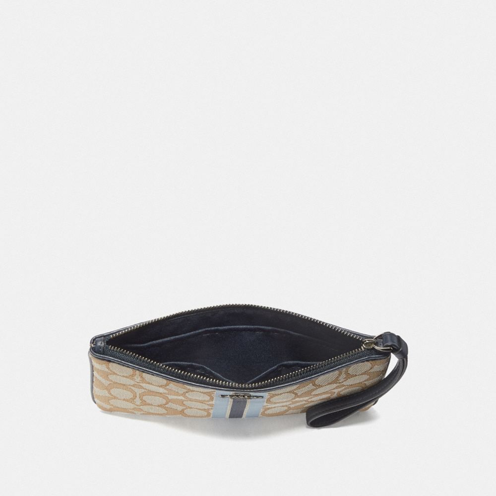 | Signature jacquard with smooth leather details| Six credit card slots| Inside multifunction pocket| Zip-top closure, fabric lining| Wrist strap attached| 8" (L) x 4 3/4" (H) x 3/4" (W)