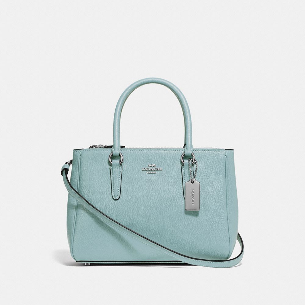 Crossgrain leather| Inside multifunction pockets| Snap closure, fabric lining| Side zip compartments| Handles with 4" drop| Detachable strap with 23" drop for shoulder or crossbody wear| 9 1/4" (L) x 6 3/4" (H) x 4 1/4" (W)