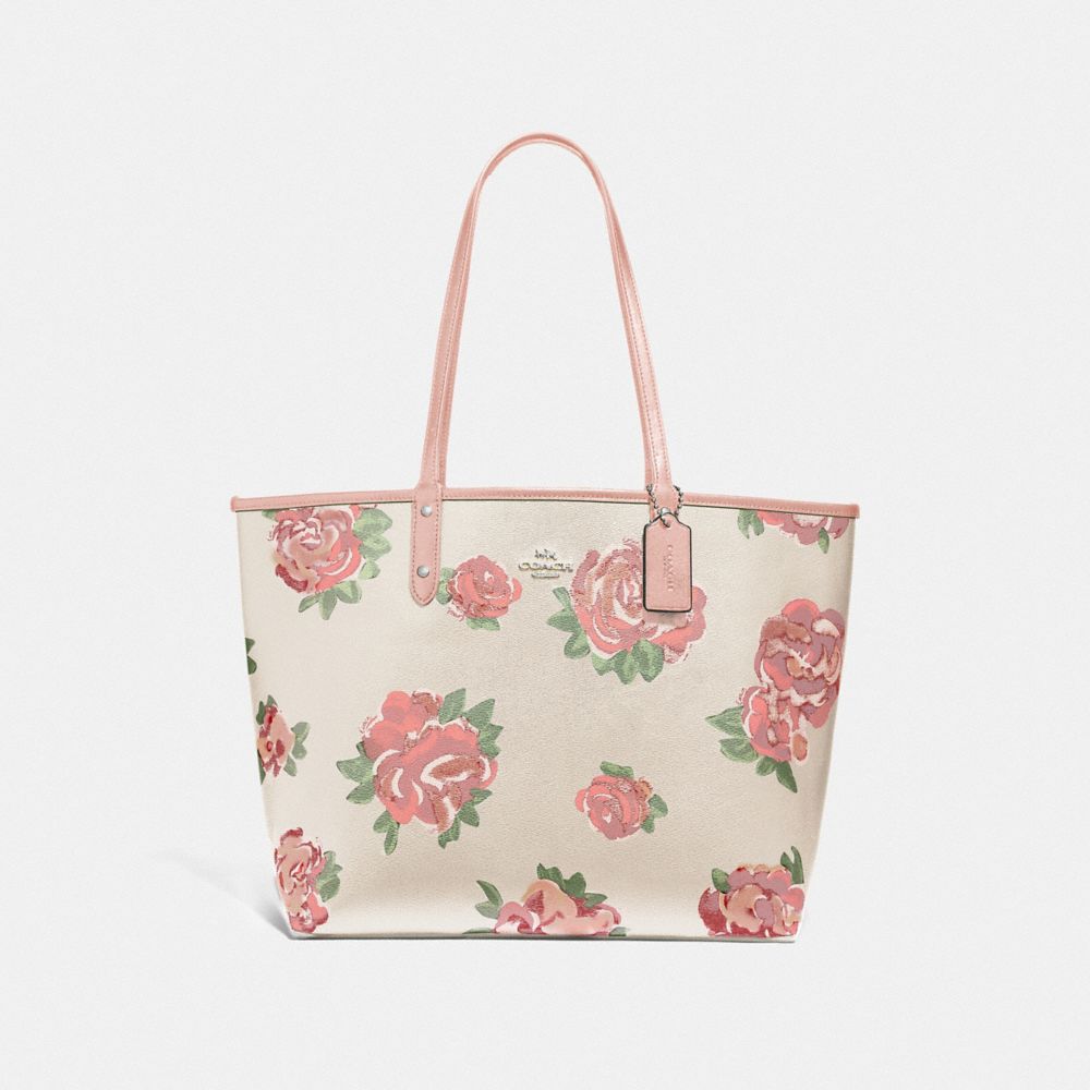 REVERSIBLE CITY TOTE WITH JUMBO FLORAL PRINT
