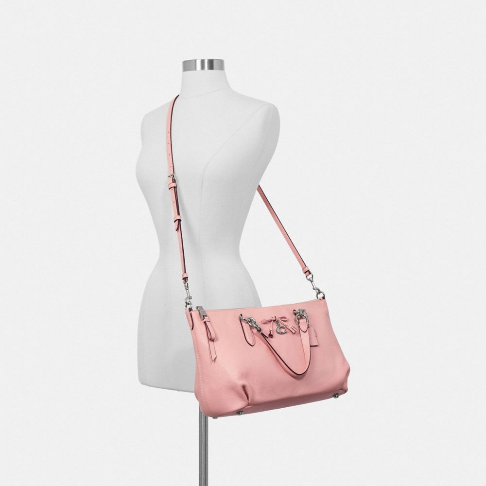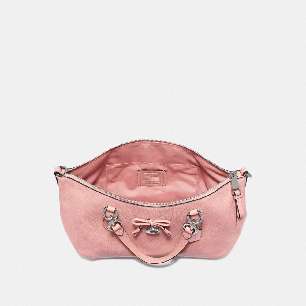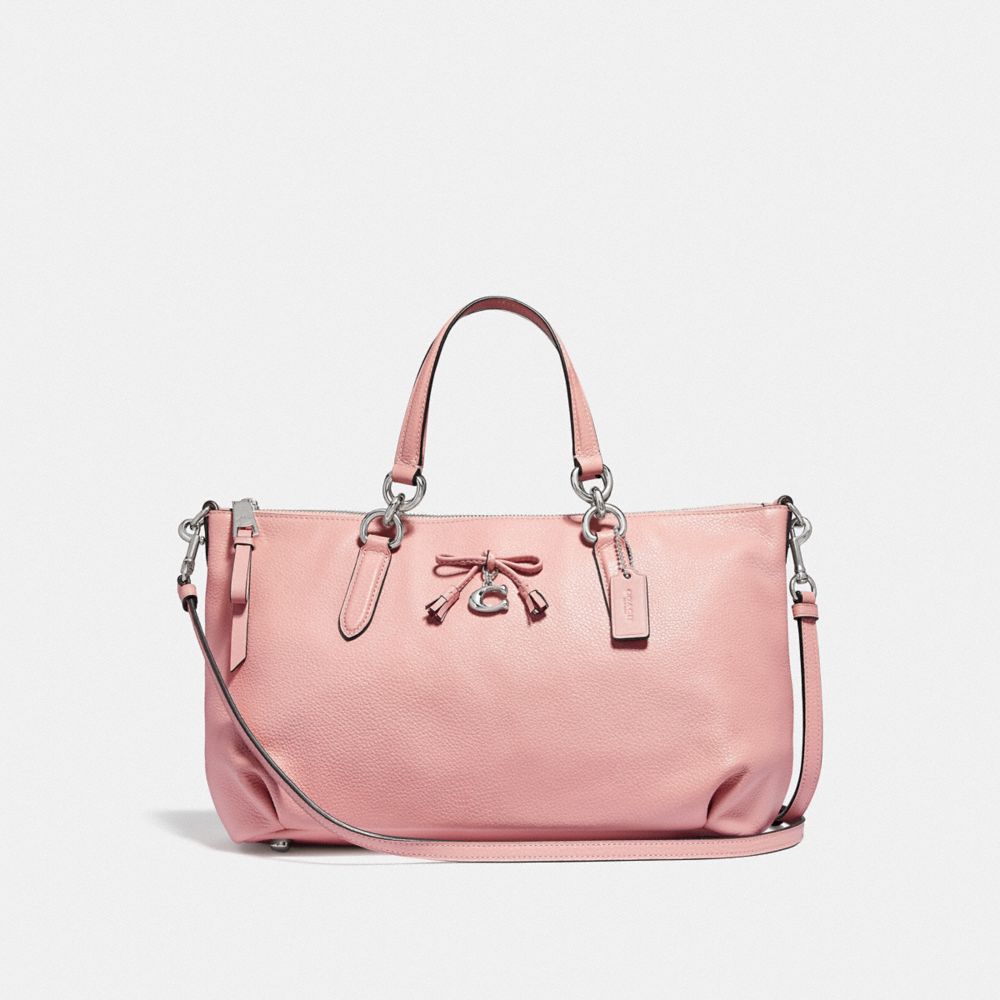 | Refined pebble leather| Inside snap pocket| Zip-top closure, fabric lining| Handles with 5 3/4" drop| Outside slip pocket| Detachable strap with 22" drop for shoulder or crossbody wear| 14 1/2" (L) x 8 3/4" (H) x 5 1/4" (W)