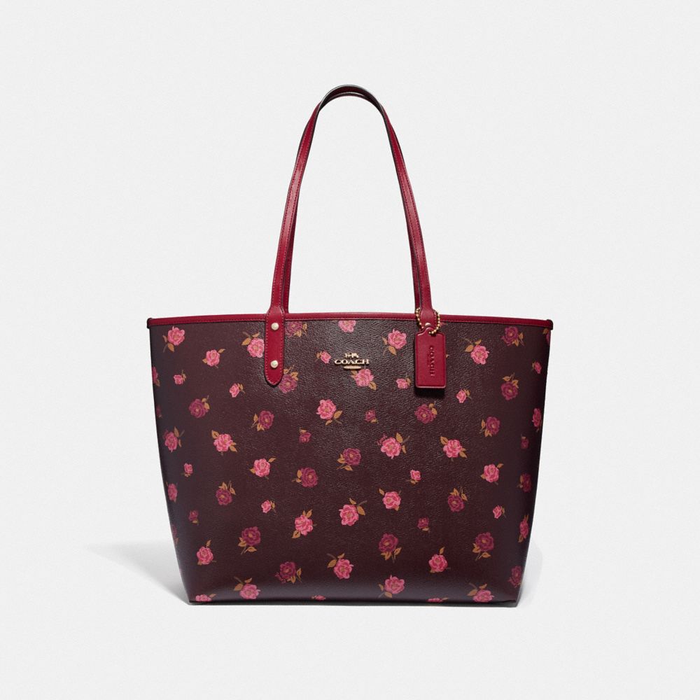 REVERSIBLE CITY TOTE WITH TOSSED PEONY PRINT
