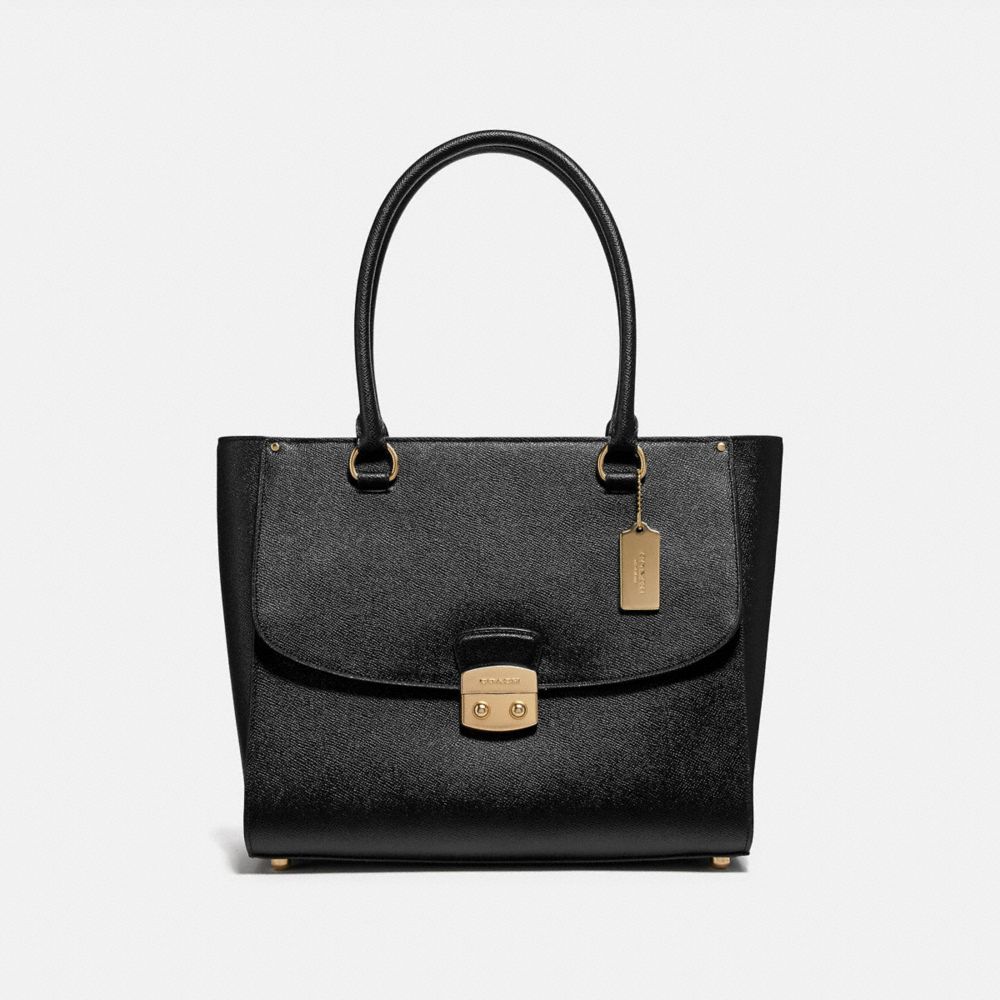 | Crossgrain leather| Inside cell phone and multifunction pockets| Zip-top closure, fabric lining| Handles with 7 3/4" drop| Outside flap pocket| 12 1/2" (L) x 10 3/4" (H) x 5 3/4" (W)