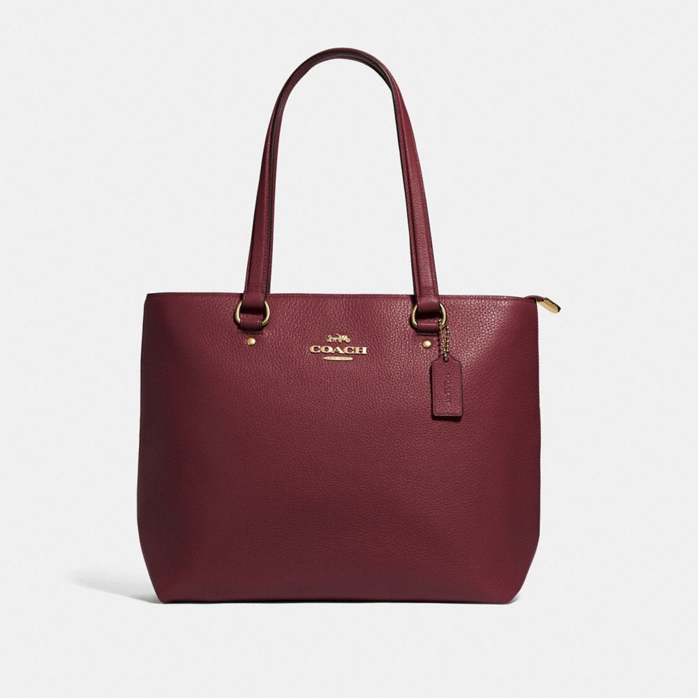 | Refined pebble leather| Inside cell phone and multifunction pockets| Zip-top closure, fabric lining| Handles with 9 1/4" drop| Outside zip pocket| 12 1/2" (L) x 11" (H) x 5 1/4" (W)
