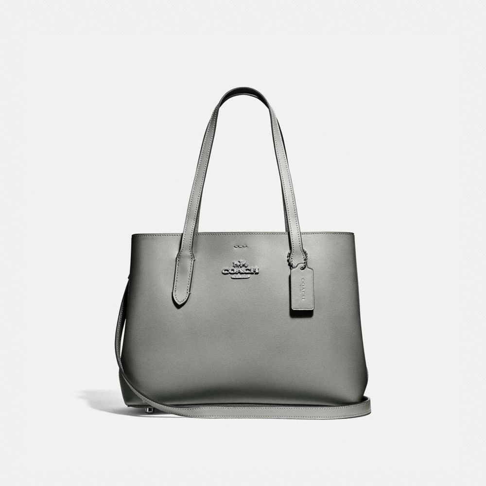Metallic double face leather| Center zip compartment| Snap closure, fabric lining| Handles with 8 1/2" drop| Detachable strap with 19 1/2" drop for shoulder or crossbody wear| 13" (L) x 9 3/4" (H) x 5 1/2" (W)