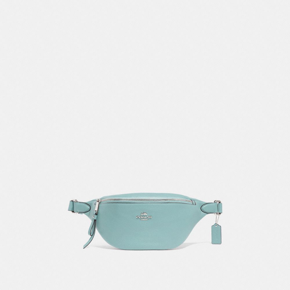 Refined pebble leather| One credit card slot| Zip closure, fabric lining| Adjustable strap for wear at waist| 14 1/4" (L) x 5" (H) x 4 1/4" (W)