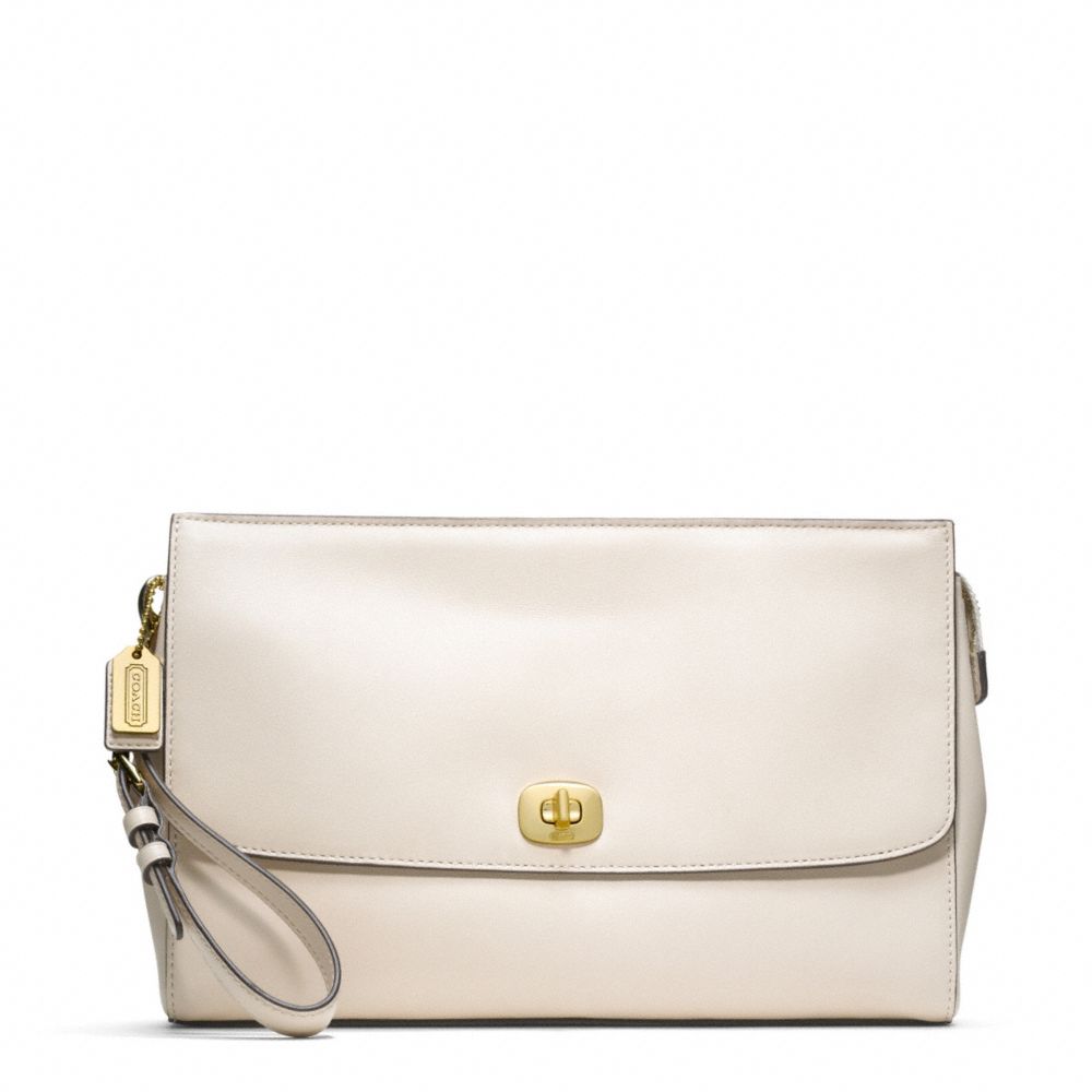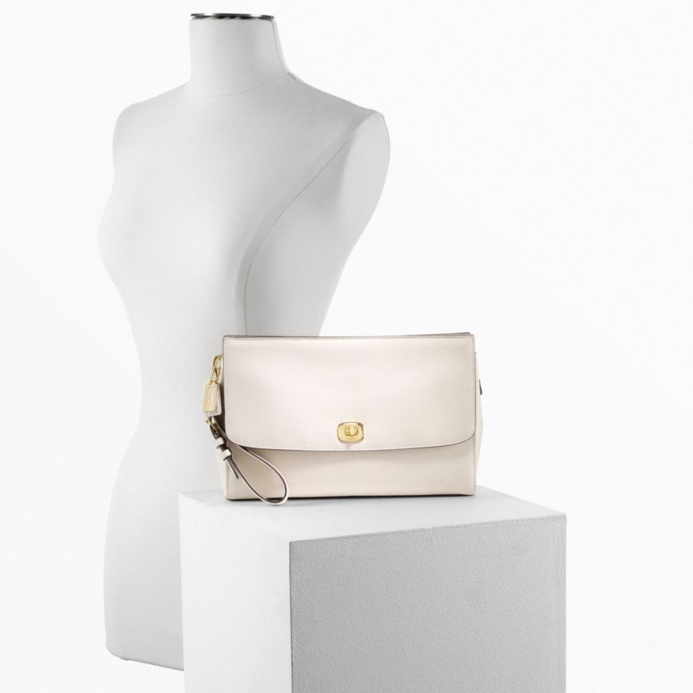 PINNACLE LEATHER ZIP CLUTCH WITH FLAP