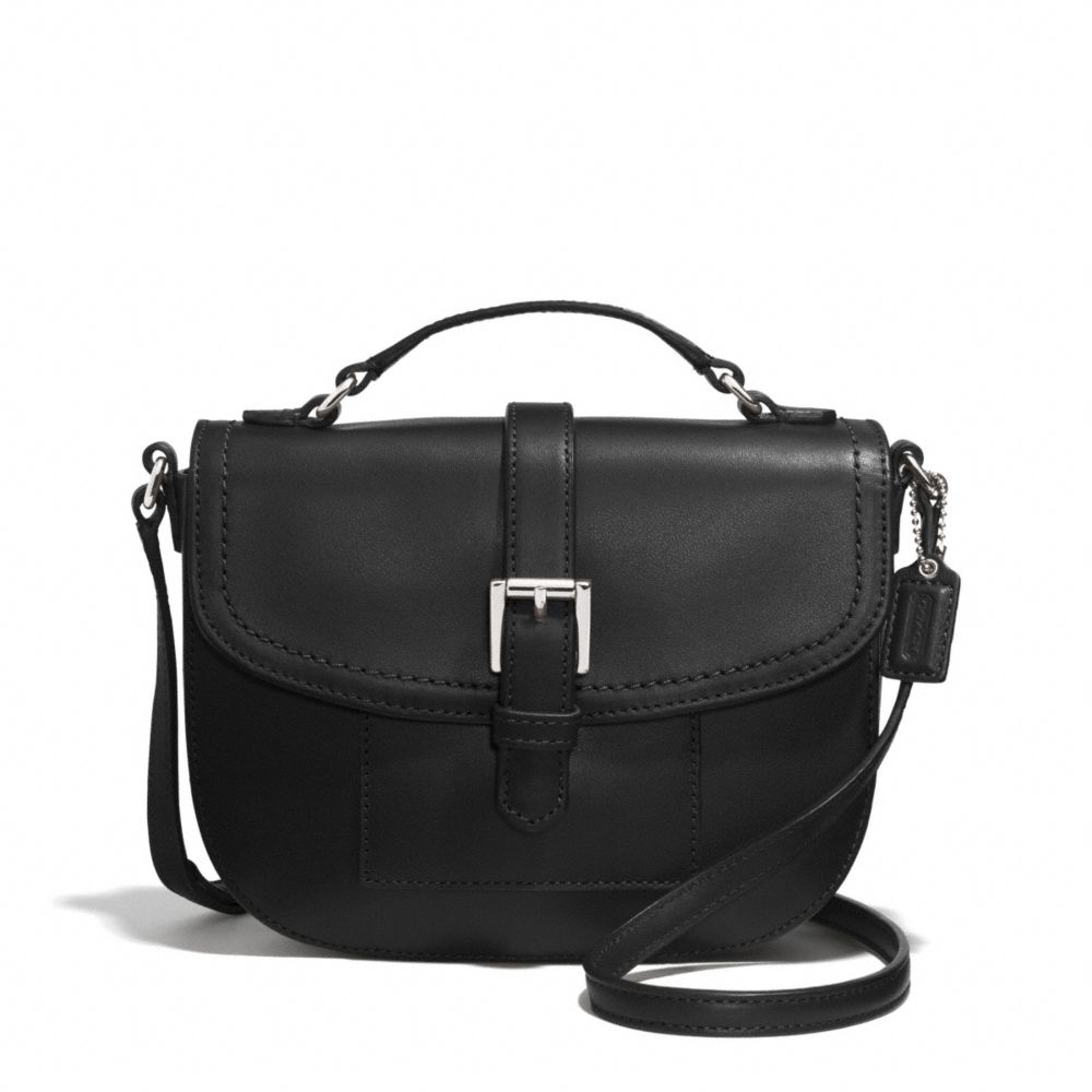 Details| | | Leather| Inside zip, cell phone and multifunction pockets| Snap closure, fabric lining| Handles with 1" drop| Outside open and zip pockets| Longer strap for shoulder or shoulder wear|7 3/4" (L) x 6" (H) x 1 3/4" (W)