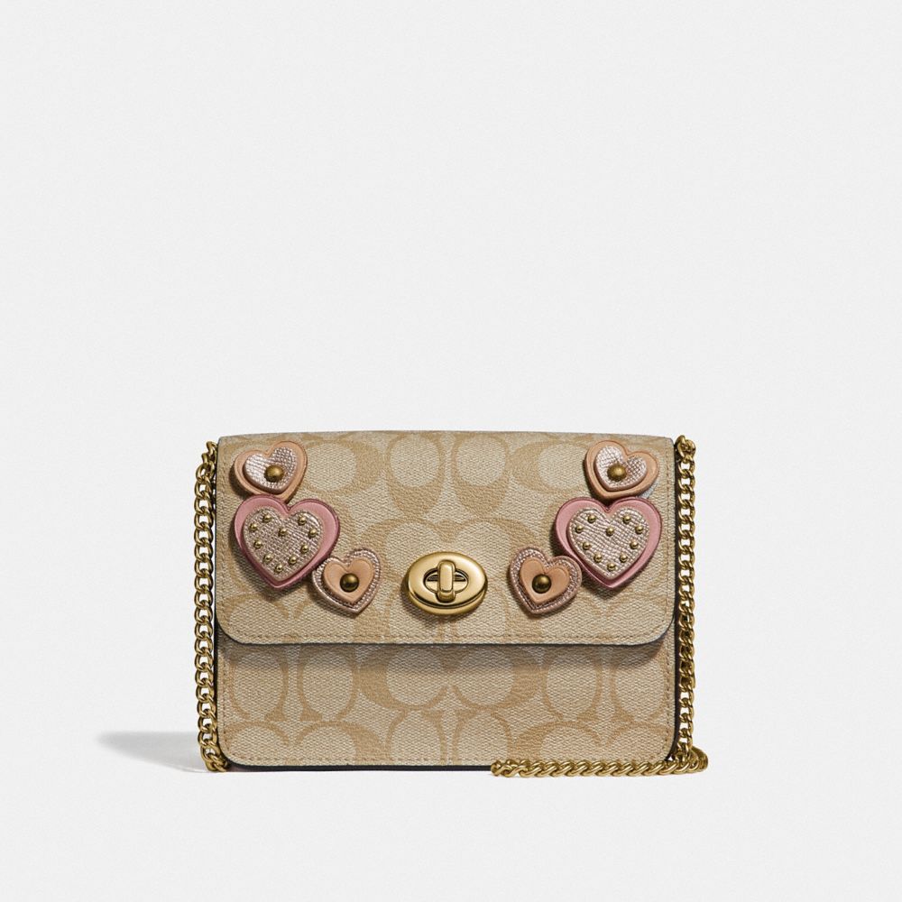BOWERY CROSSBODY IN SIGNATURE CANVAS WITH HEART APPLIQUE