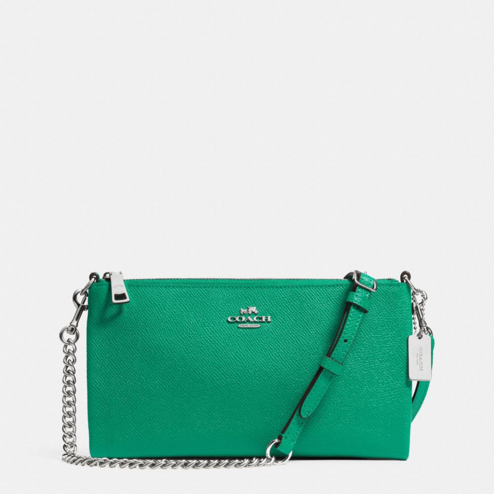 Details| | | Crossgrain leather| Three credit card pockets and open multifunction pocket| Zip-top closure, fabric lining| Adjustable strap with 23" drop for shoulder or crossbody wear| 8 1/2" (L) x 4 3/4" (H)