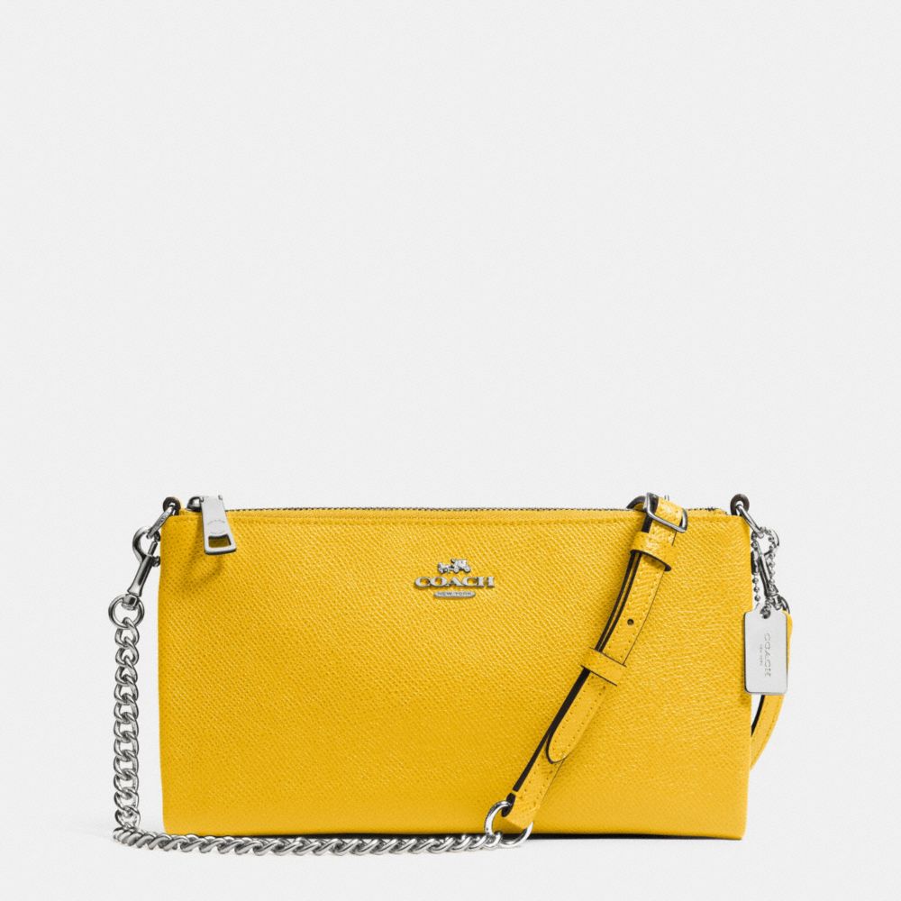 Details| | | Crossgrain leather| Three credit card pockets and open multifunction pocket| Zip-top closure, fabric lining| Adjustable strap with 23" drop for shoulder or crossbody wear| 8 1/2" (L) x 4 3/4" (H)