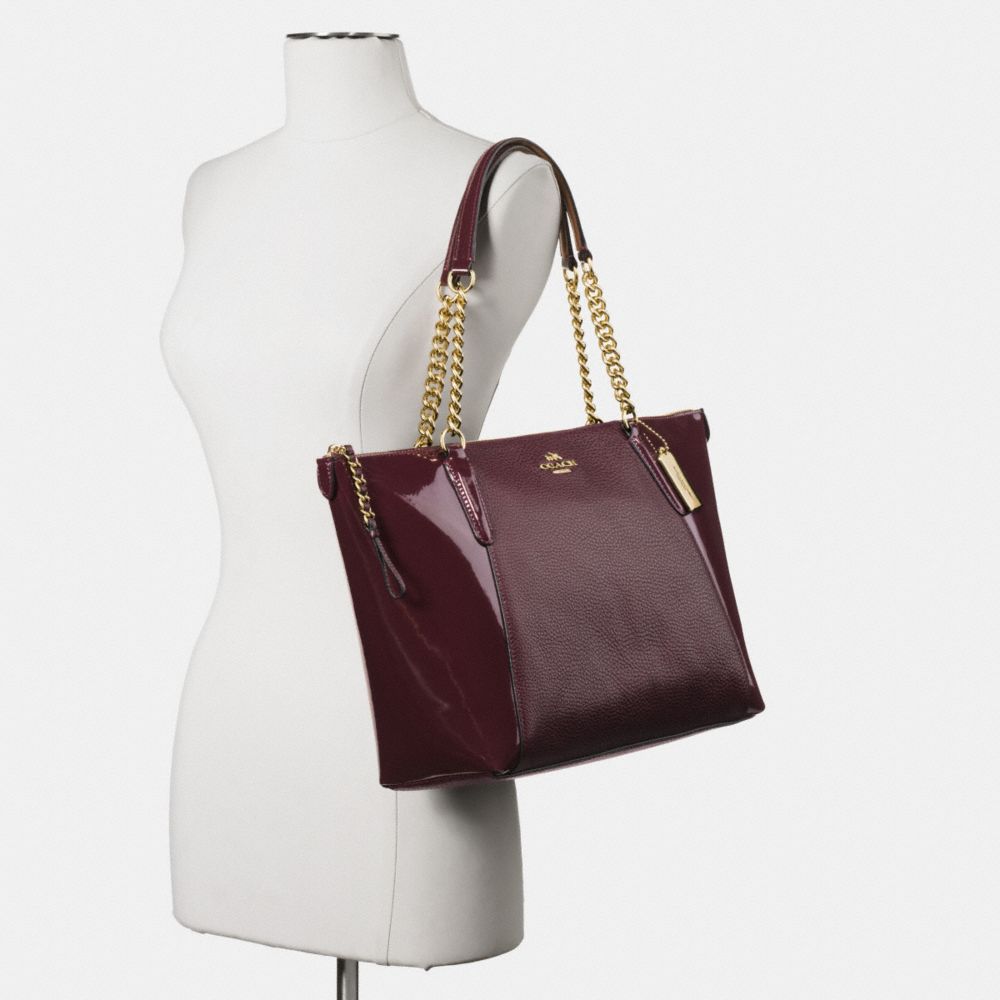 AVA CHAIN TOTE IN PEBBLE AND PATENT LEATHERS