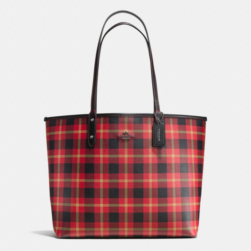 REVERSIBLE CITY TOTE IN RILEY PLAID COATED CANVAS