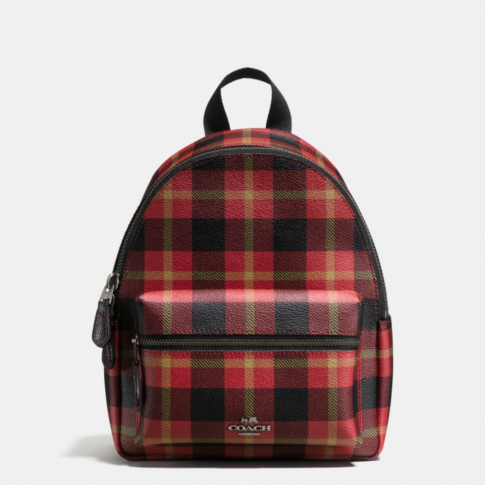 MINI CHARLIE BACKPACK IN RILEY PLAID COATED CANVAS