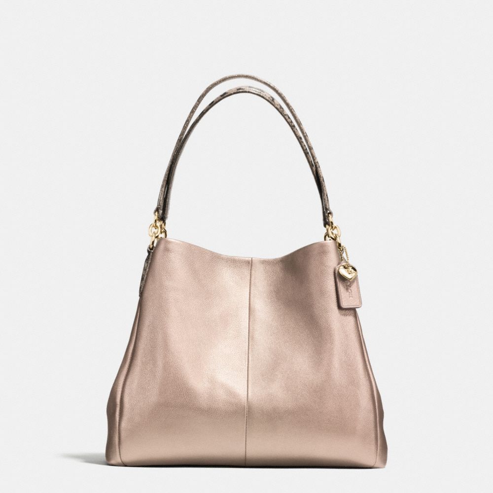 PHOEBE SHOULDER BAG IN METALLIC LEATHER WITH EXOTIC TRIM