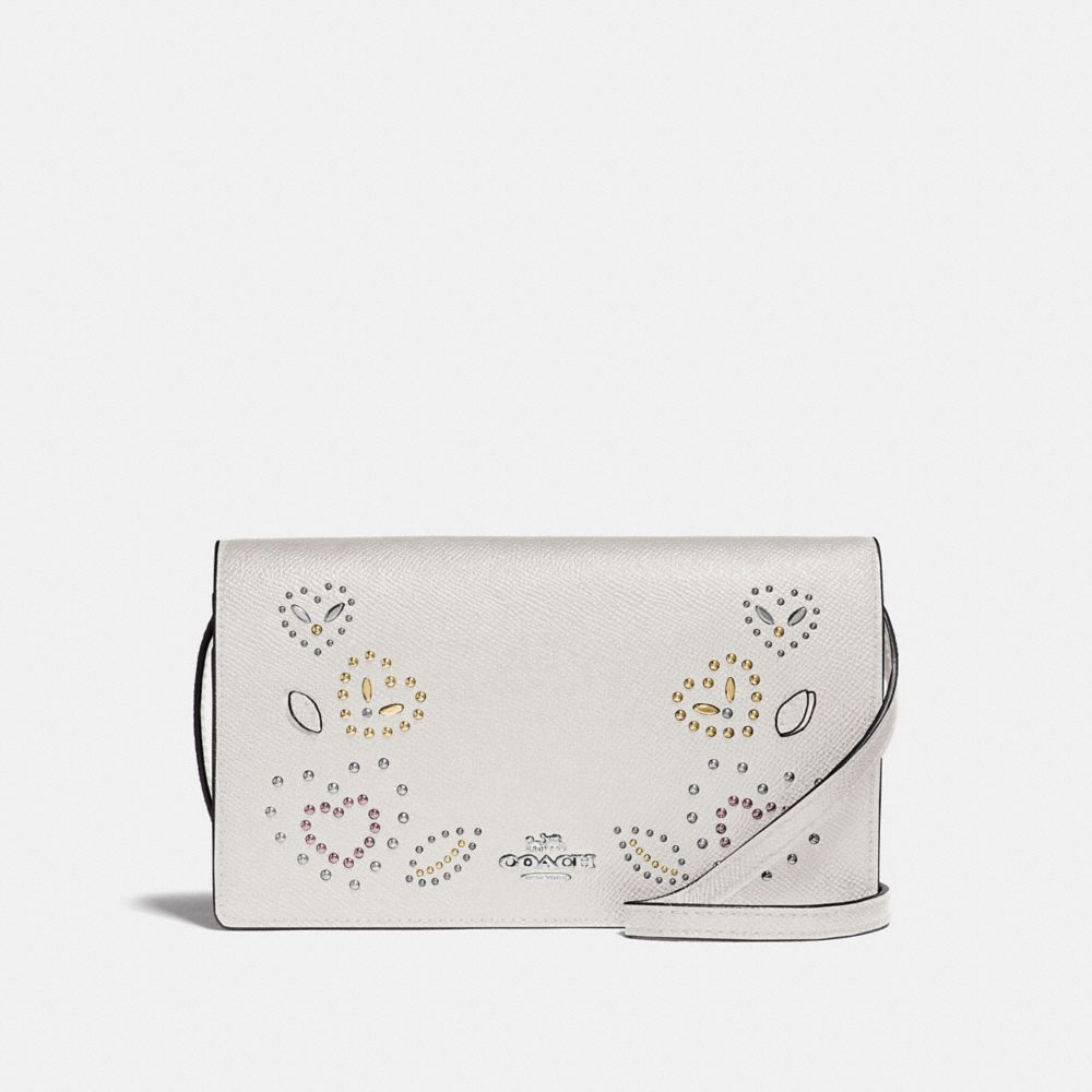 HAYDEN FOLDOVER CROSSBODY CLUTCH WITH HEART BANDANA RIVETS