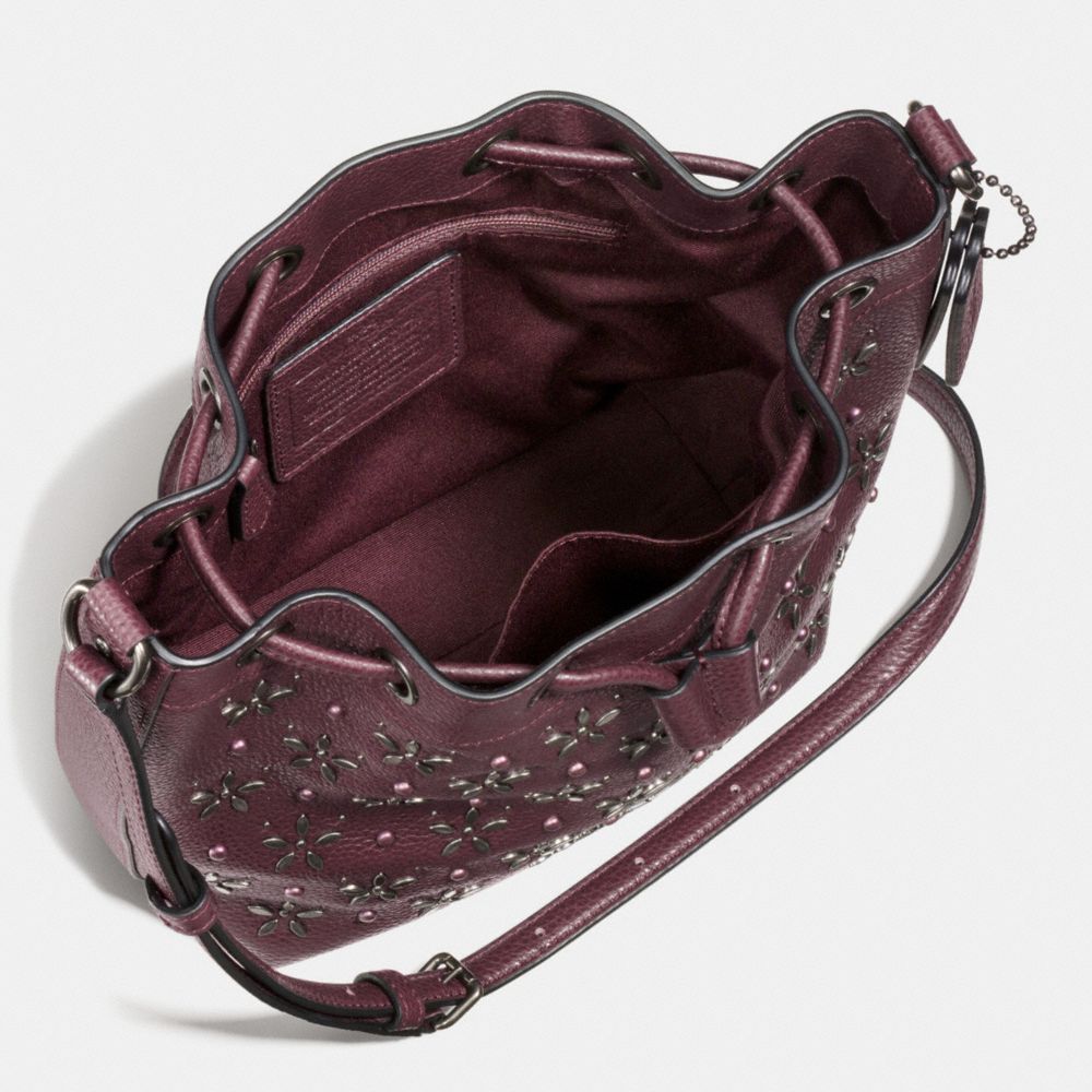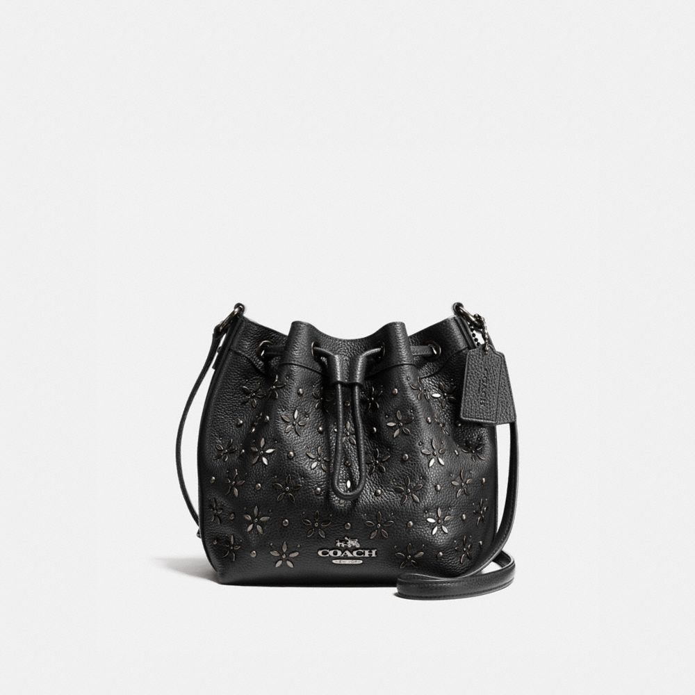 MINI DRAWSTRING SHOULDER BAG WITH FLORAL STUDS
