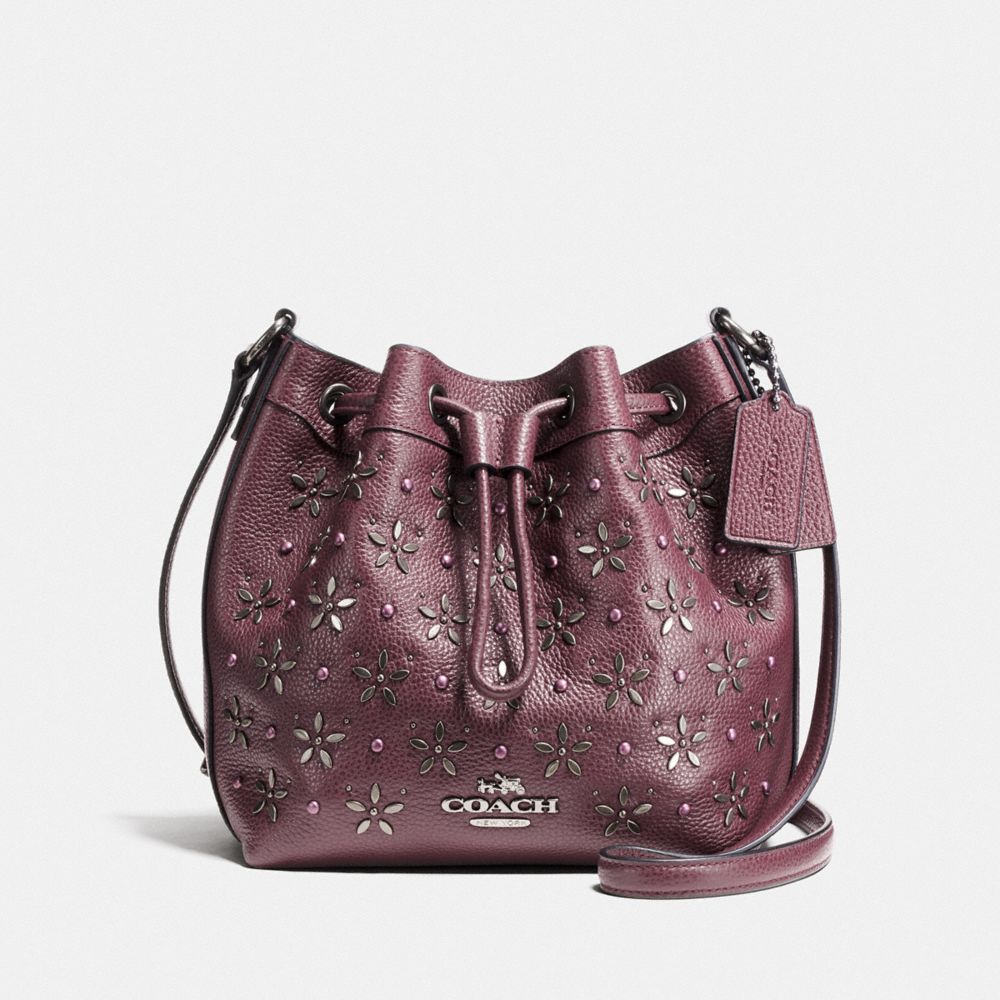 MINI DRAWSTRING SHOULDER BAG WITH FLORAL STUDS