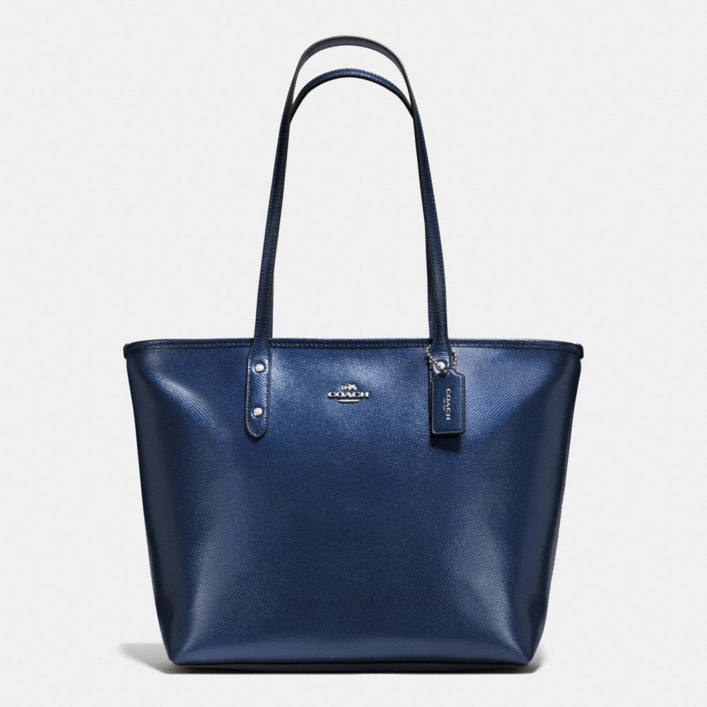 CITY ZIP TOTE IN METALLIC CROSSGRAIN LEATHER