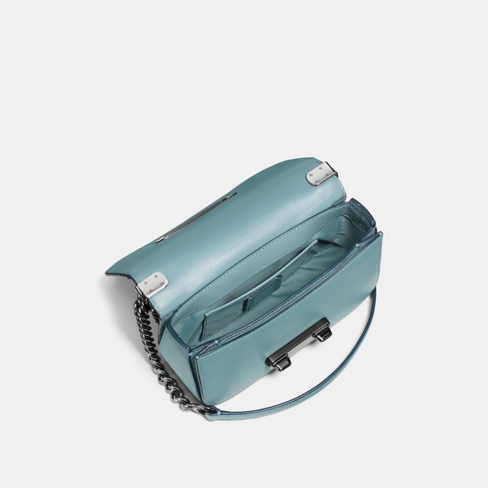 Glovetanned leather| Inside multifunction pockets| Turnlock closure, fabric lining| Outside open pocket| Strap with 21 3/4" drop for shoulder or crossbody wear| 7 3/4" (L) x 5" (H) x 2 1/4" (W)