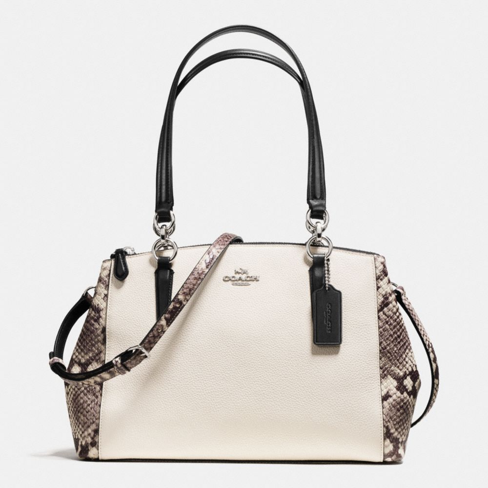 SMALL CHRISTIE CARRYALL WITH SNAKE EMBOSSED LEATHER TRIM