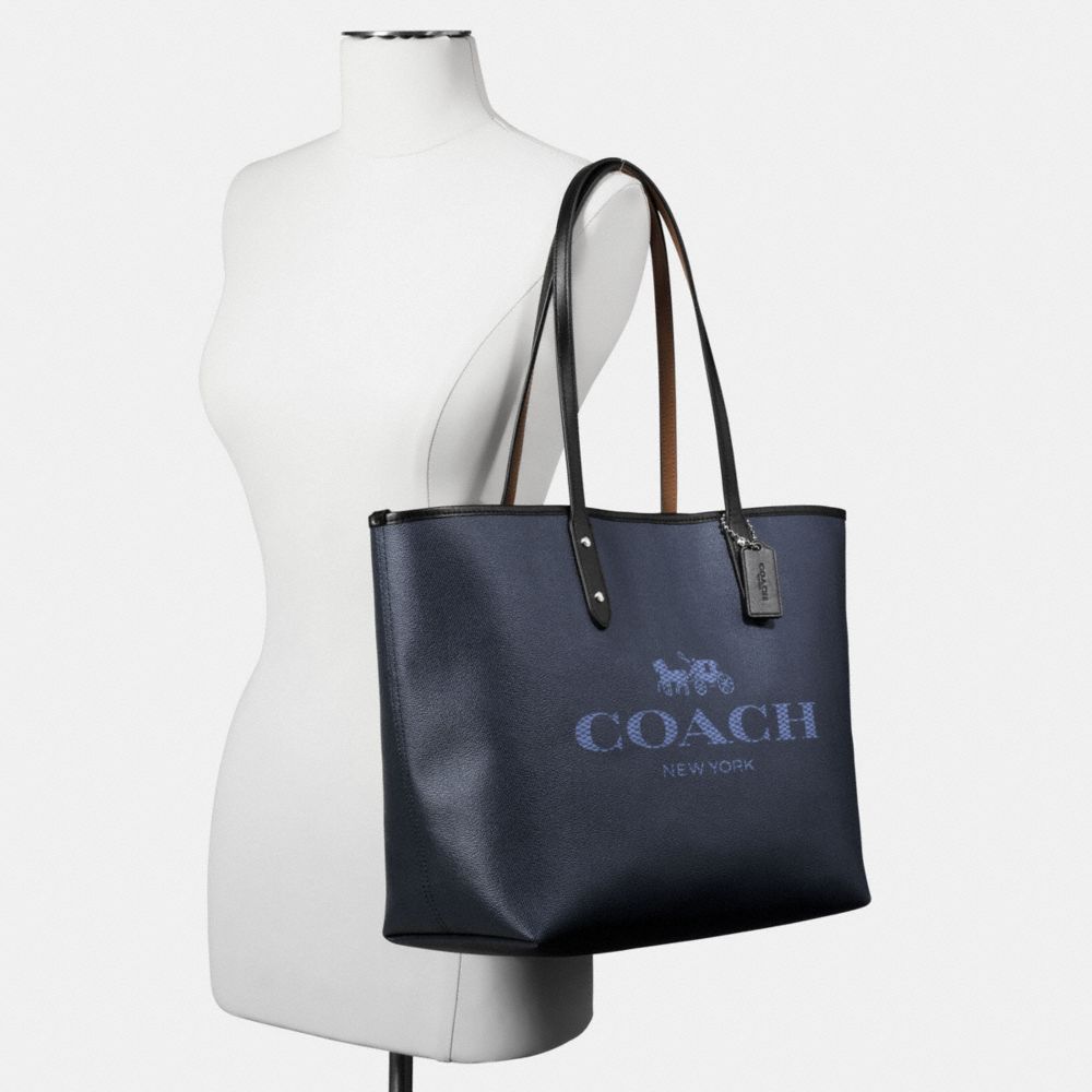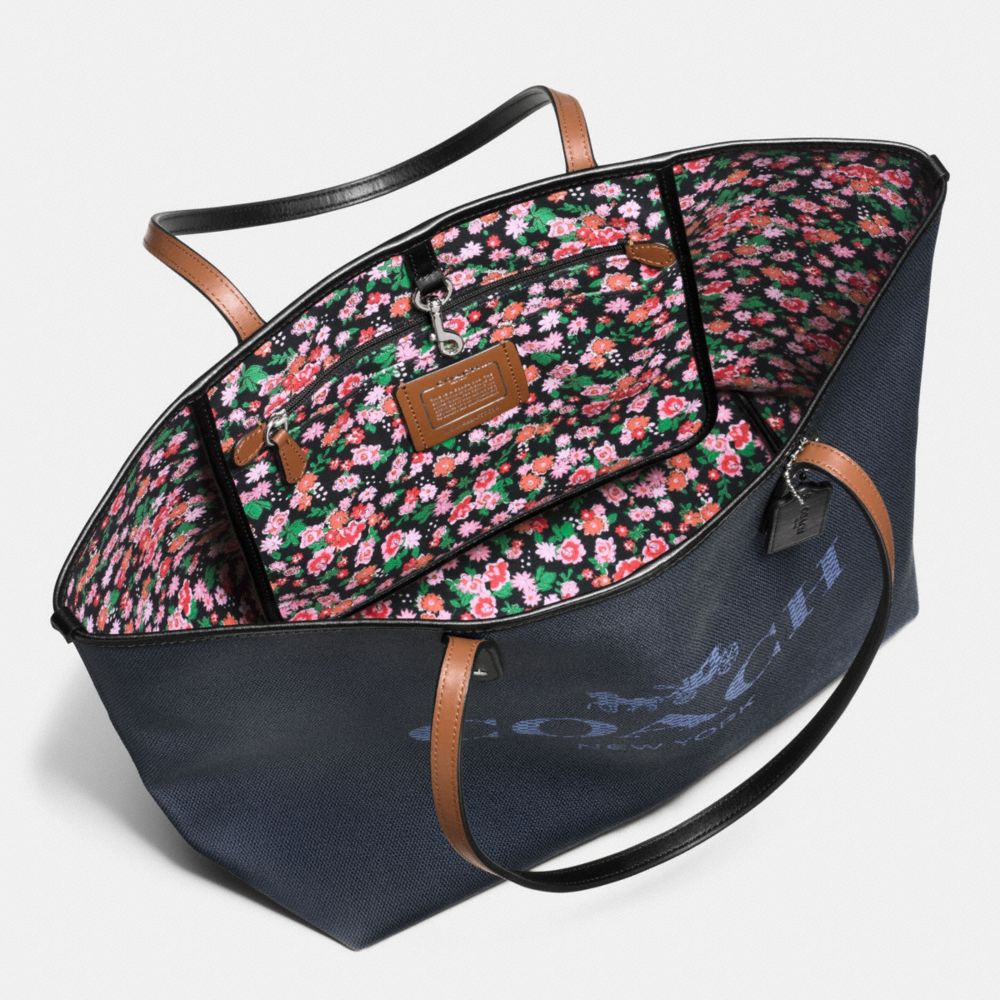 CITY TOTE IN DENIM WITH HORSE AND CARRIAGE