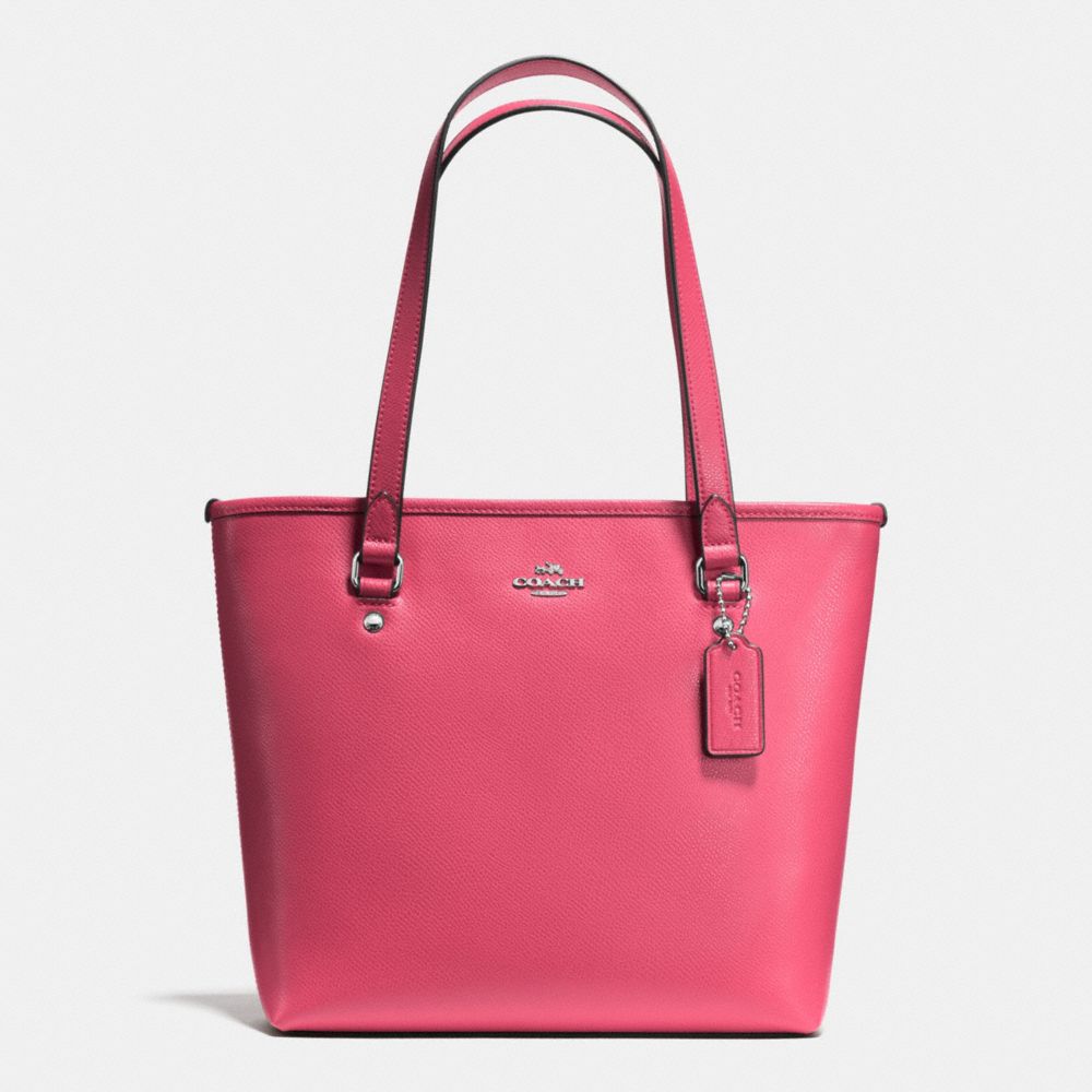 ZIP TOP TOTE IN CROSSGRAIN LEATHER AND COATED CANVAS