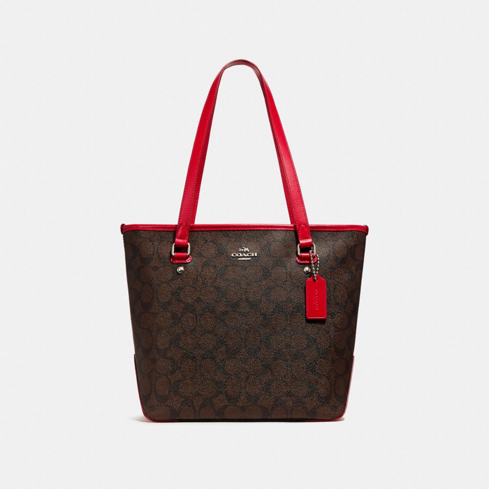 COACH F58294 SILVER/BROWN-TRUE-RED