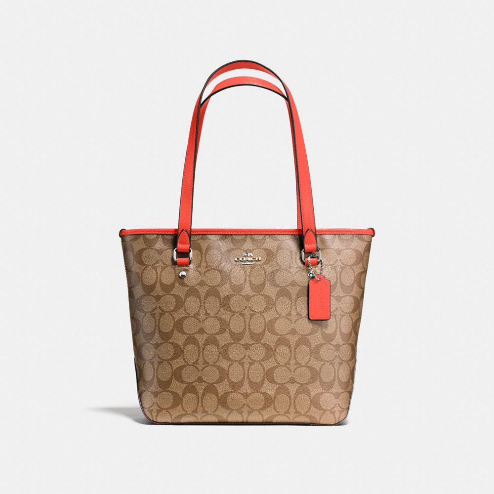 ZIP TOP TOTE IN SIGNATURE COATED CANVAS