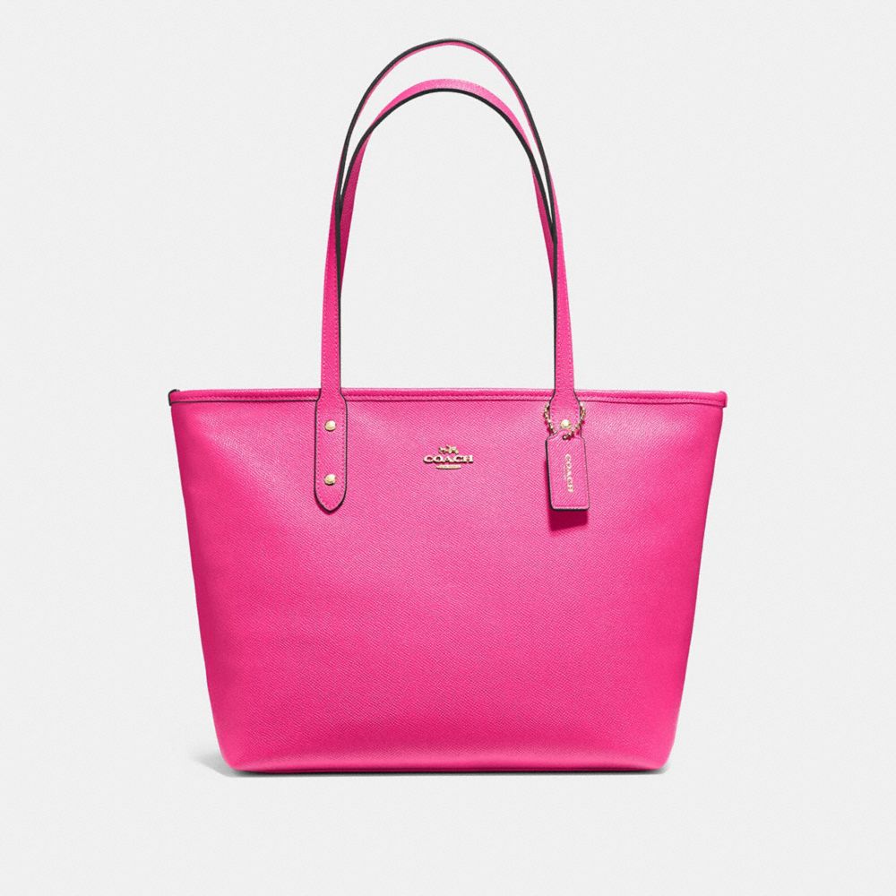 Crossgrain leather and coated canvas| Inside zip, cell phone and multifunction pockets| Zip-top closure, fabric lining| Handles with 10" drop| 11 3/4" (L) x 10 1/2" (H) x 5 1/2" (W)