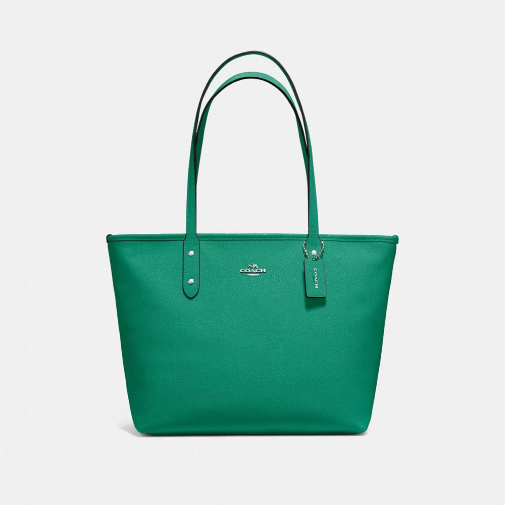 Crossgrain leather and coated canvas| Inside zip, cell phone and multifunction pockets| Zip-top closure, fabric lining| Handles with 10" drop| 11 3/4" (L) x 10 1/2" (H) x 5 1/2" (W)