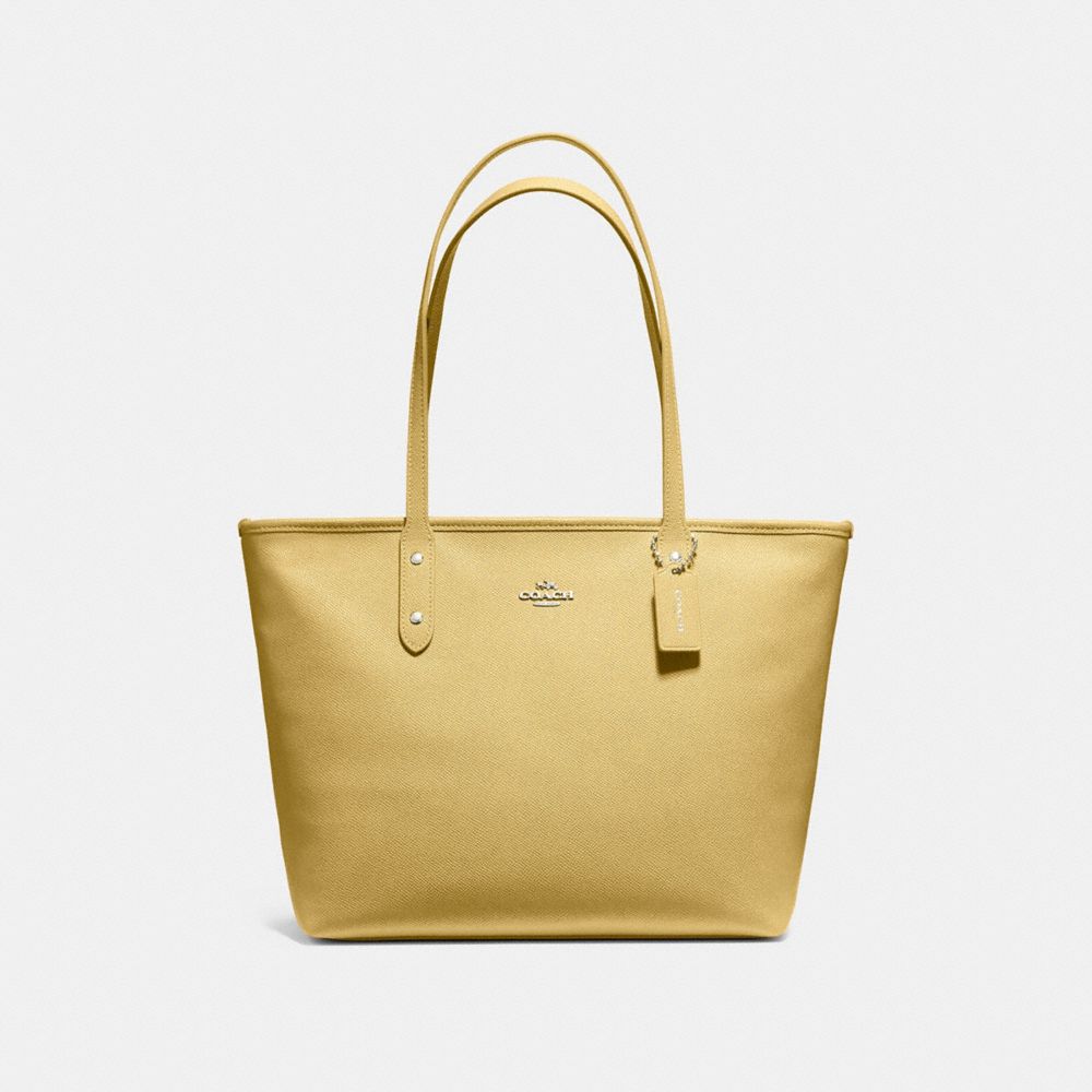 Crossgrain leather and coated canvas| Inside zip, cell phone and multifunction pockets| Zip-top closure, fabric lining| Handles with 10" drop| 11 3/4" (L) x 10 1/2" (H) x 5 1/2" (W)