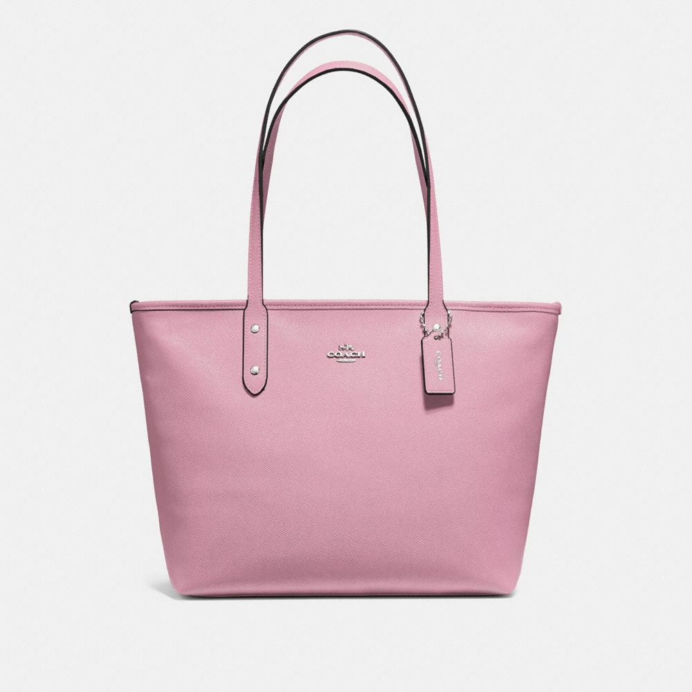 Crossgrain leather and coated canvas| Inside zip, cell phone and multifunction pockets| Zip-top closure, fabric lining| Handles with 10" drop| 11 3/4" (L) x 10 1/2" (H) x 5 1/2" (W)