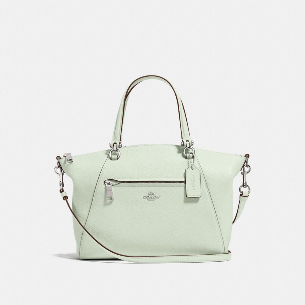 Polished pebble leather| Inside zip pocket| Zip-top closure, fabric lining| Handles with 5" drop| Outside zip pocket| Detachable strap with 21" drop for shoulder or crossbody wear| 10 1/2" (L) x 8 3/4" (H) x 3 3/4" (W)