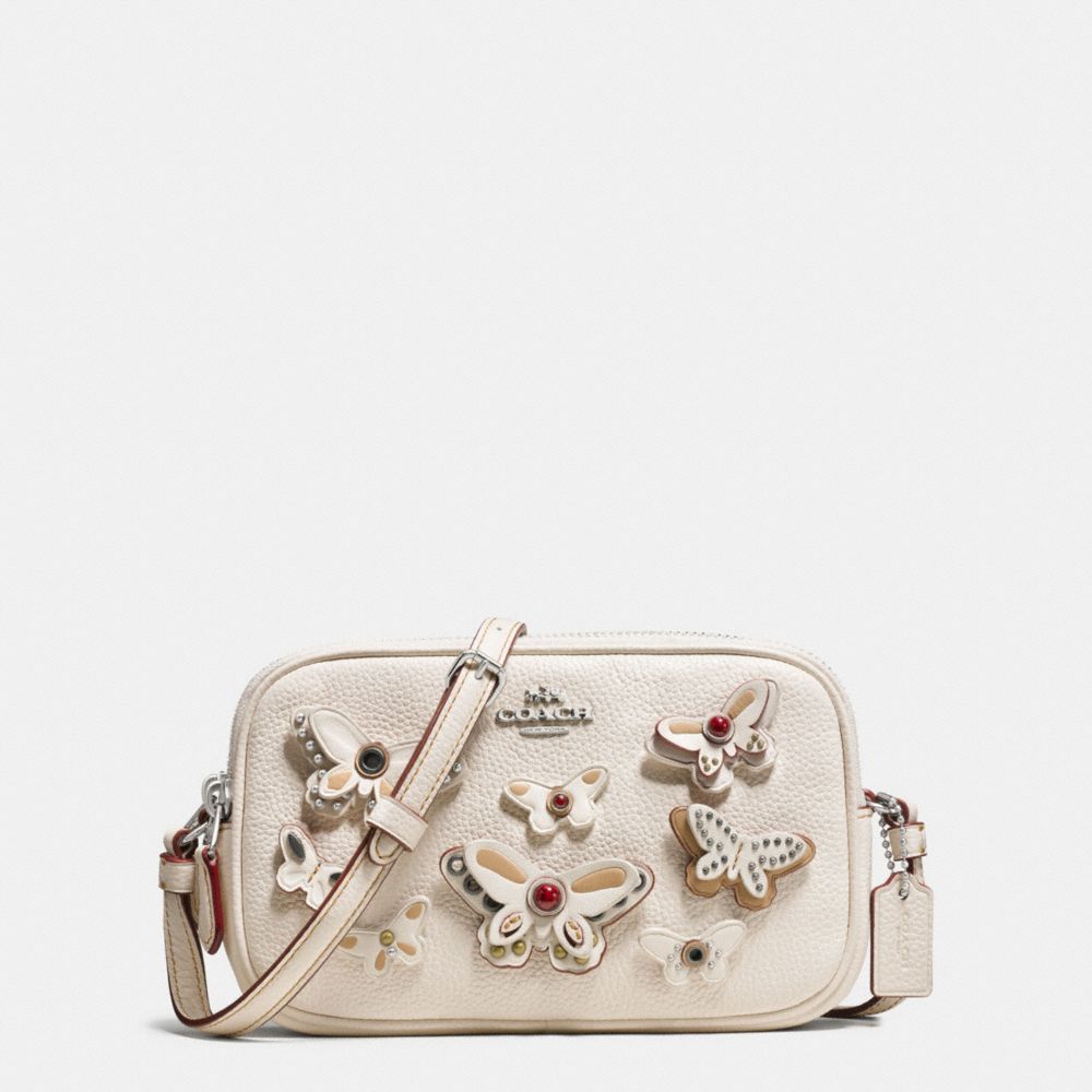 CROSSBODY POUCH IN PEBBLE LEATHER WITH BUTTERFLY APPLIQUE