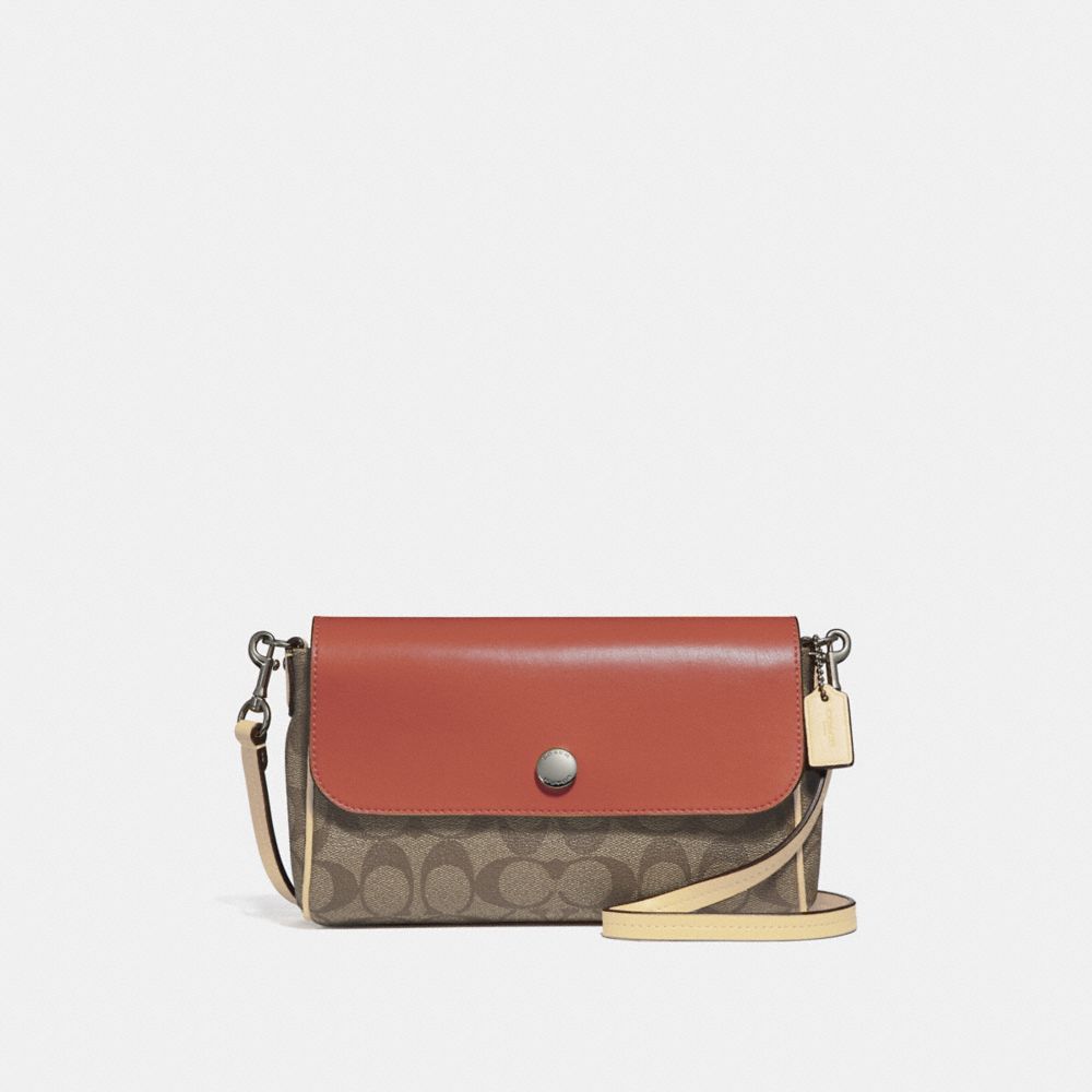 Detachable strap with 21 1/2" drop for shoulder or crossbody wear