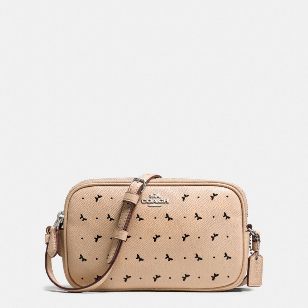 CROSSBODY POUCH IN PERFORATED CROSSGRAIN LEATHER