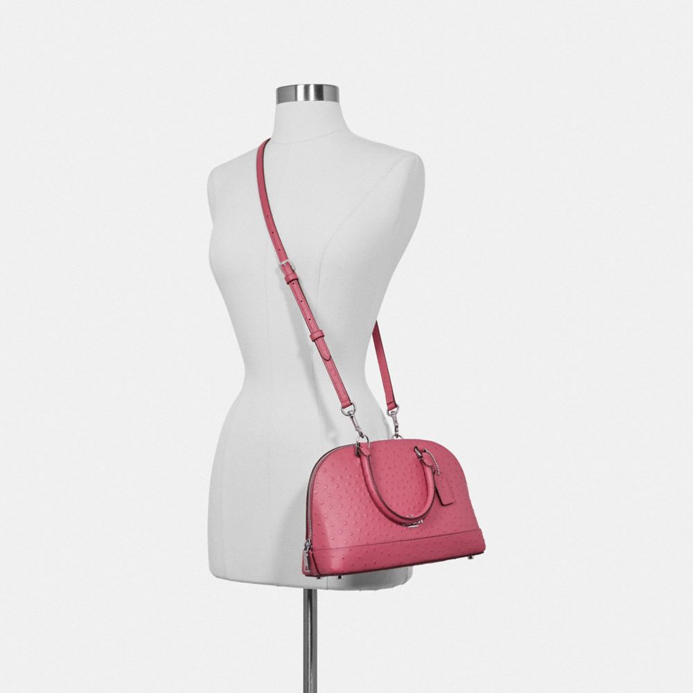 | Ostrich-embossed leather| Inside multifunction pockets| Zip closure, fabric lining| Handles with 3 1/2" drop| Outside slip pocket| Detachable strap with 21 1/2" for shoulder or crossbody wear| 10 1/4" (L) x 7" (H) x 4" (W)