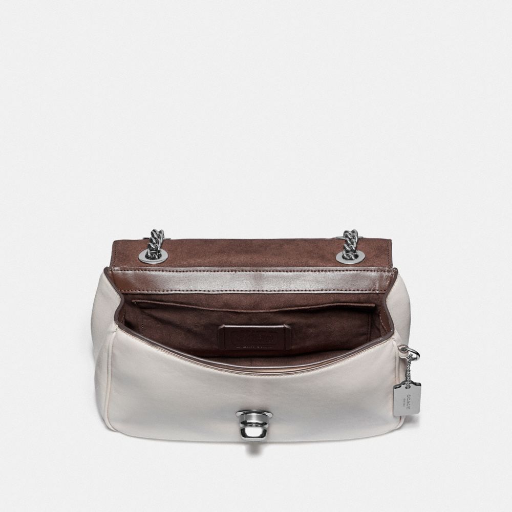 | Smooth leather| Inside multifunction pockets| Turnlock closure, fabric lining| Handles convert to shoulder strap with 22 1/2" drop| Outside slip pocket| 9 1/2" (L) x 6 1/4" (H) x 3 1/4" (W)