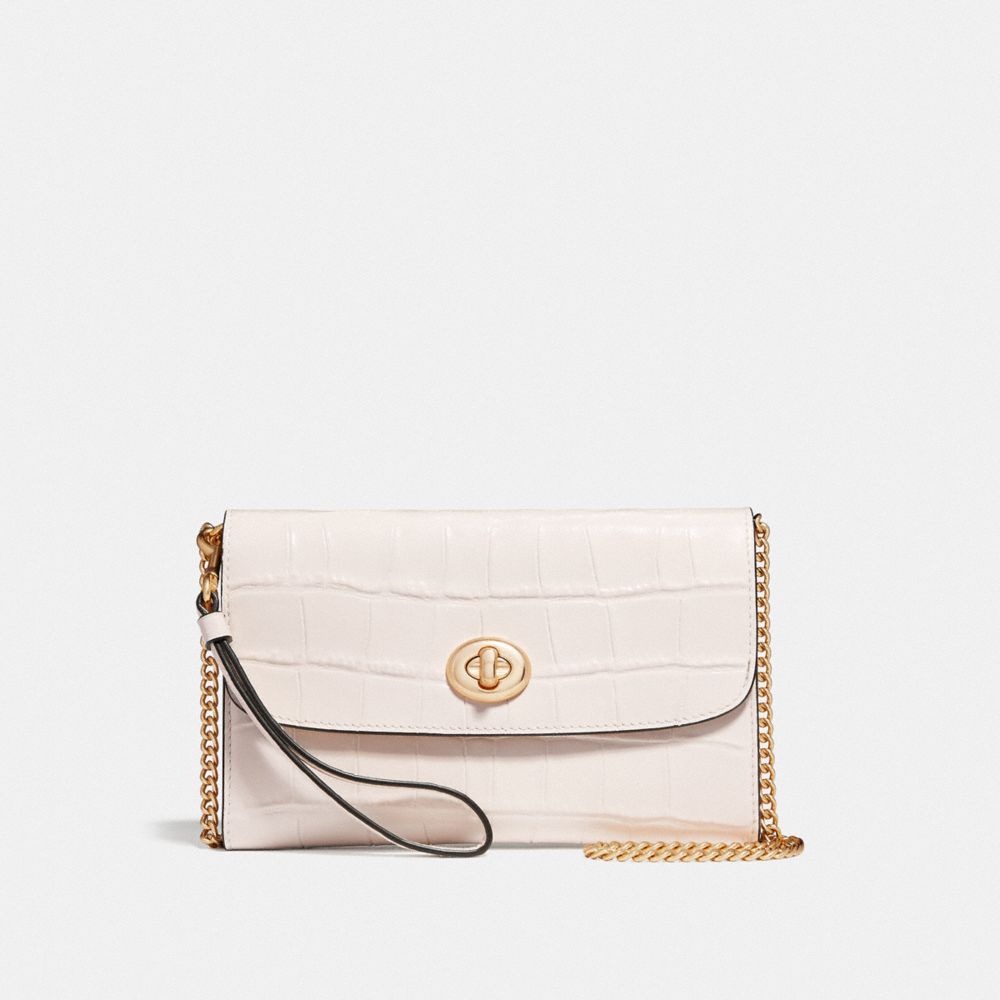 Crocodile-embossed leather with smooth leather details| Ten credit card slots| Full-length bill compartment| Inside zip compartment| Turnlock closure, fabric lining| Detachable wrist strap| Outside slip pocket| Detachable long strap with 22" drop for shoulder or crossbody wear| 8" (L) x 5" (H) x 3/4" (W)