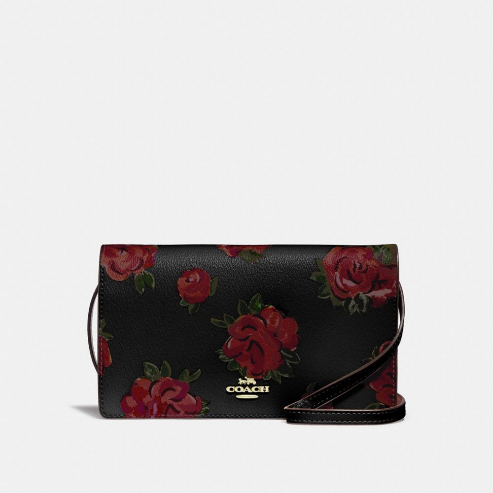 HAYDEN FOLDOVER CROSSBODY CLUTCH WITH JUMBO FLORAL PRINT
