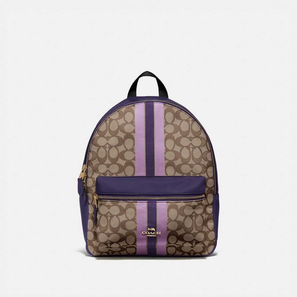 MEDIUM CHARLIE BACKPACK IN SIGNATURE JACQUARD WITH STRIPE