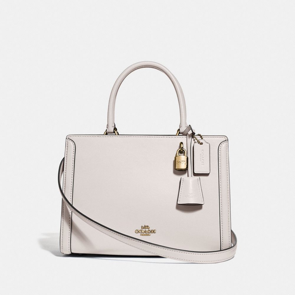 Refined calf leather| Inside multifunction pocket| Zip closure, fabric lining| Handles with 4" drop| Outside slip pocket| Detachable strap with 23" drop for shoulder or crossbody wear| 9 1/2" (L) x 6 3/4" (H) x 4 1/2" (W)